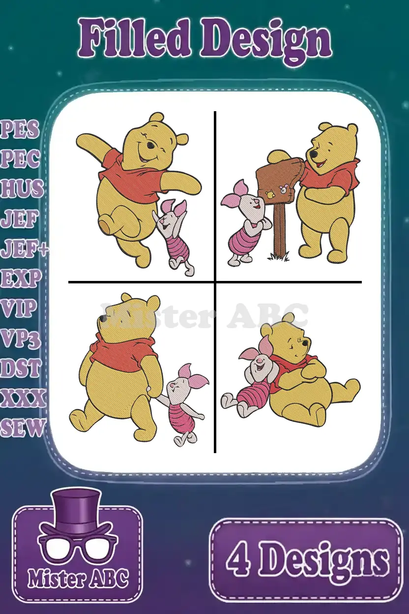 Disney Winnie Pooh Piglet Running Together By Signpost Happy Adventure Designs – Filled Embroidery Design