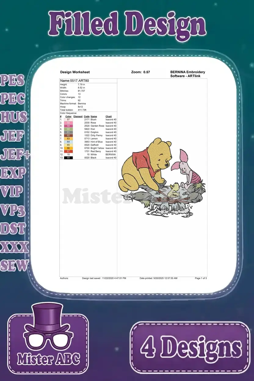 Disney Winnie Pooh Piglet Fishing In Winter Easter Eggs Springtime Fun – Filled Embroidery Design