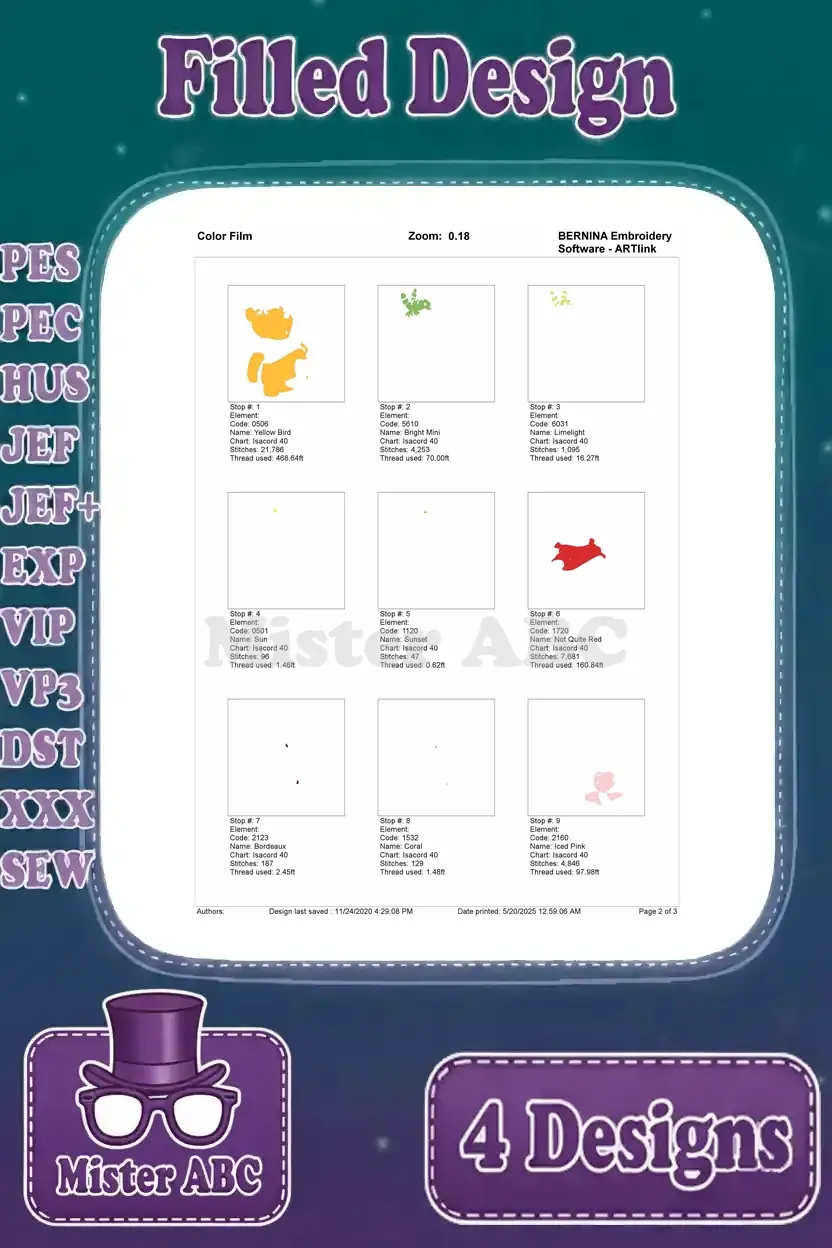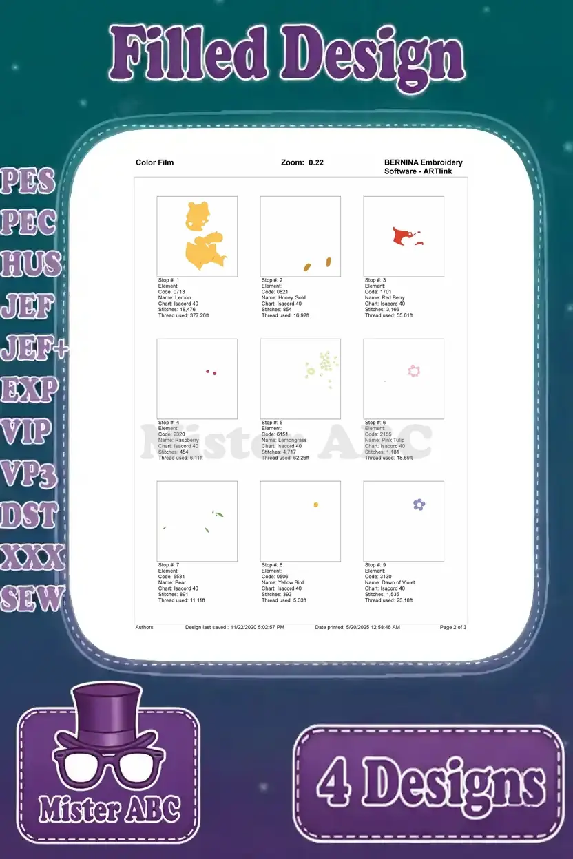 | Stitches | Colors | Thread Changes |