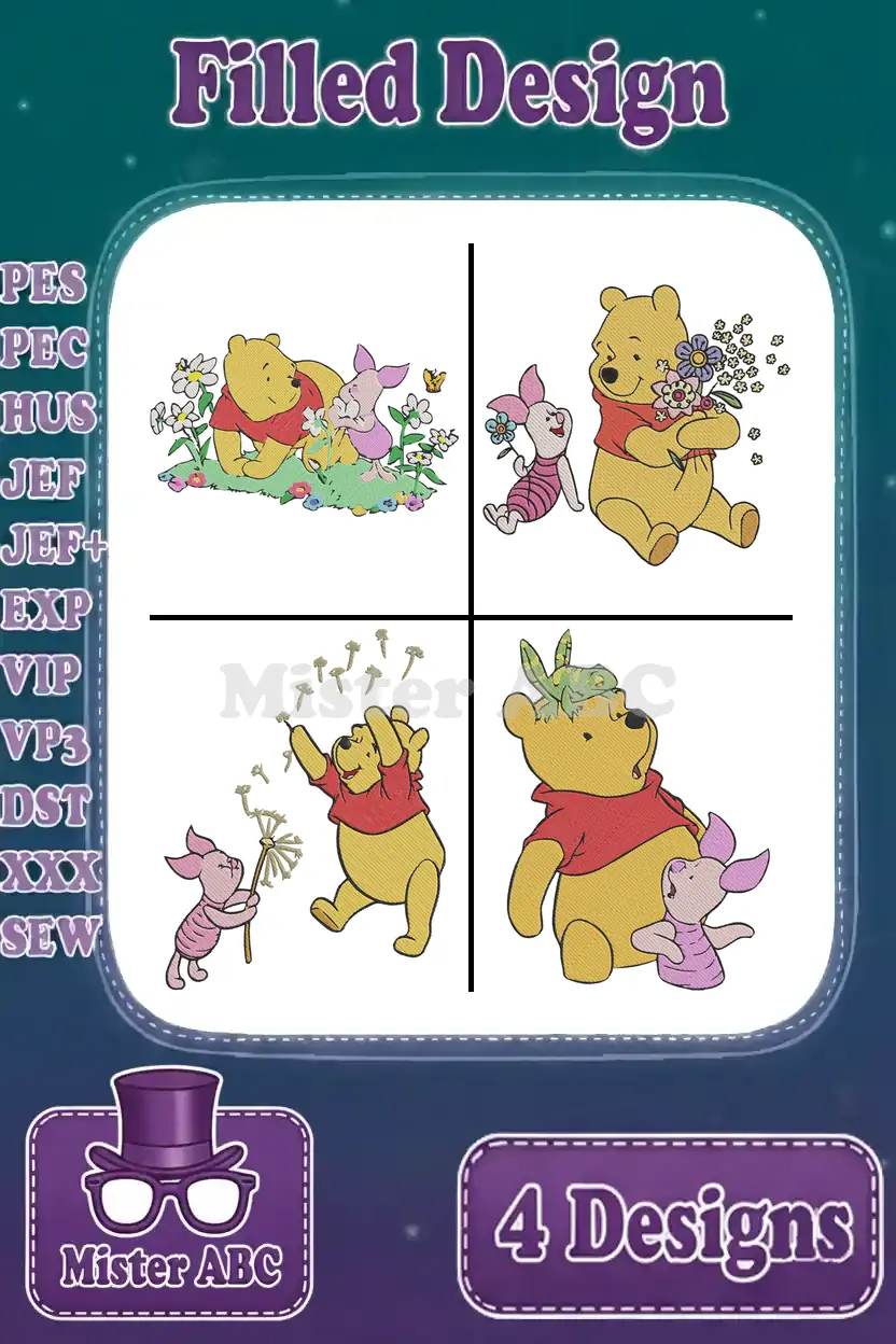 Disney Winnie Pooh Piglet In Flower Field Holding Bouquet Singing Happy Designs – Filled Embroidery Design