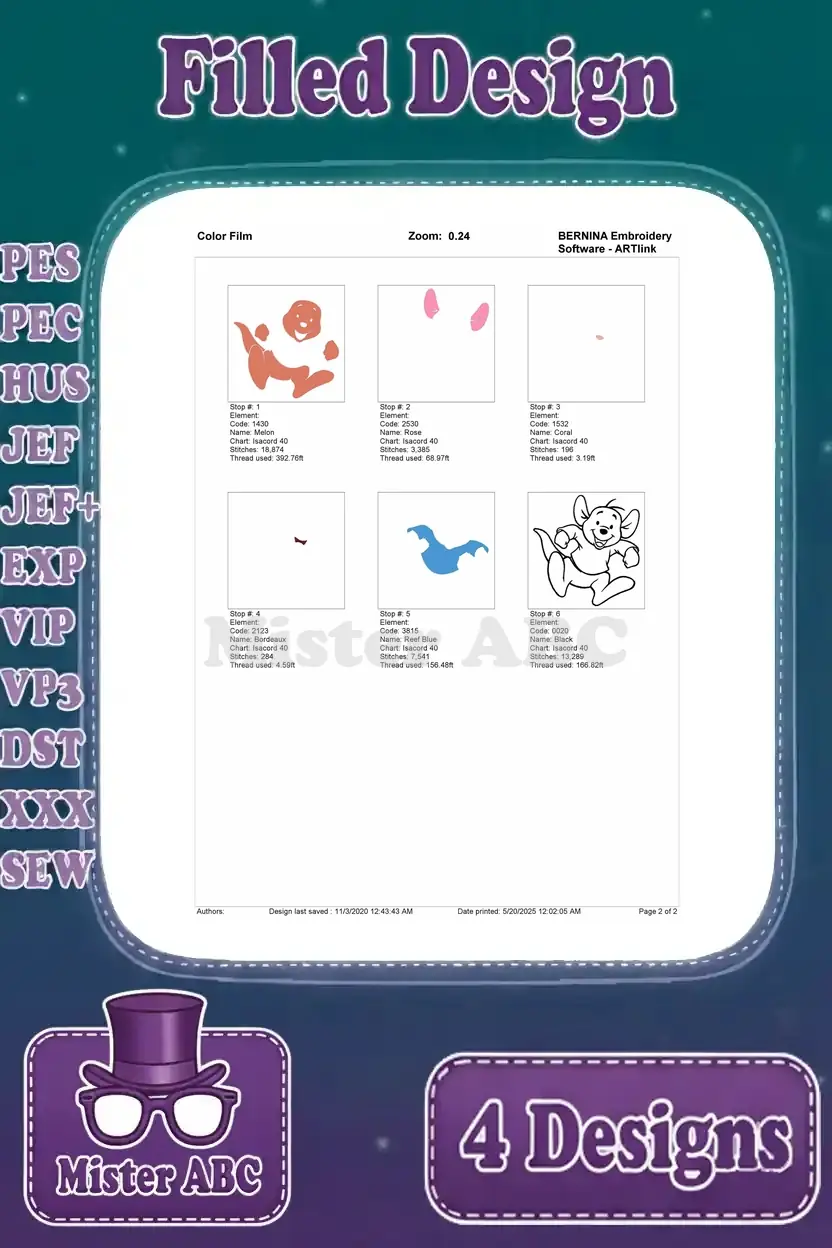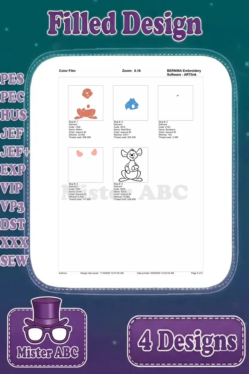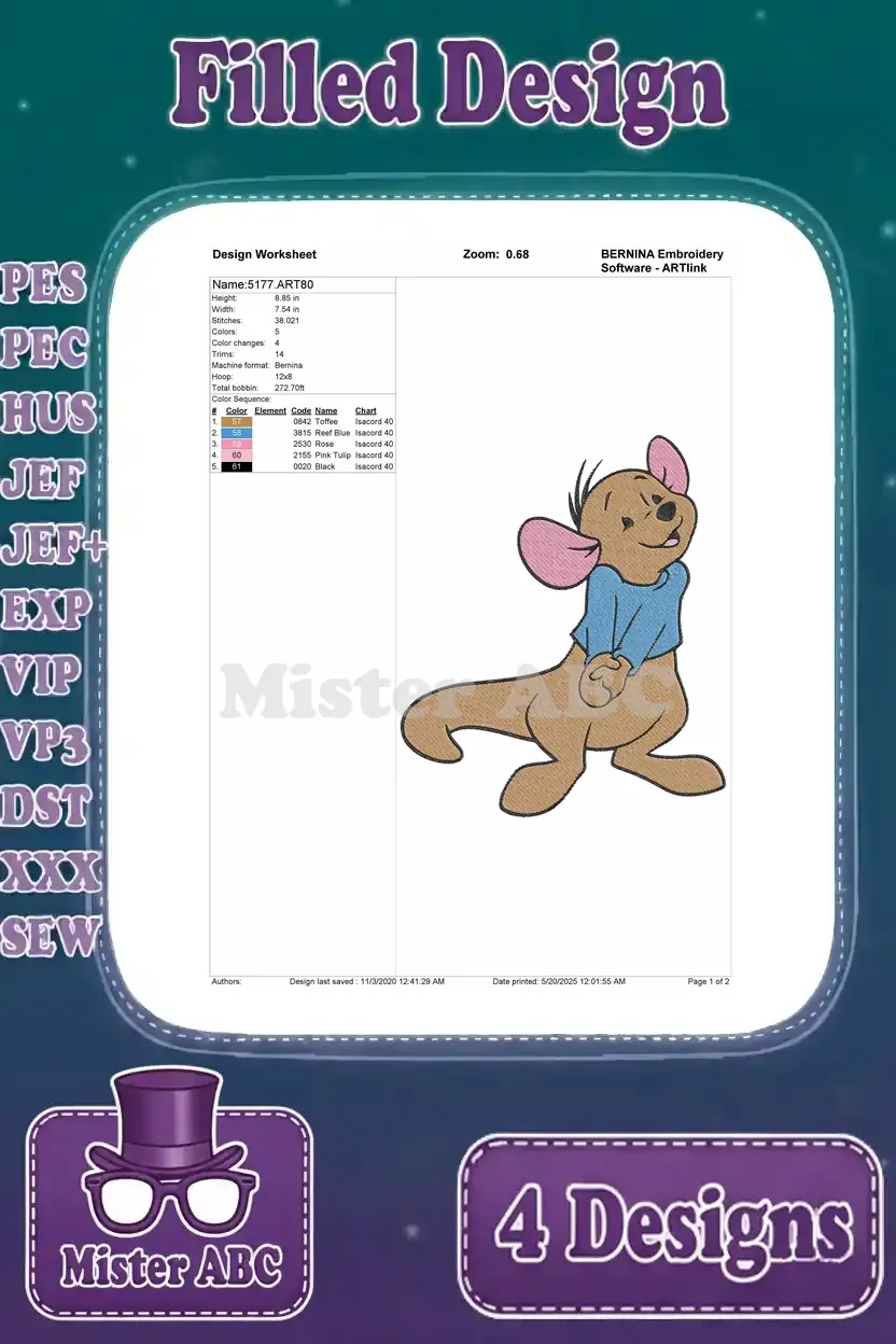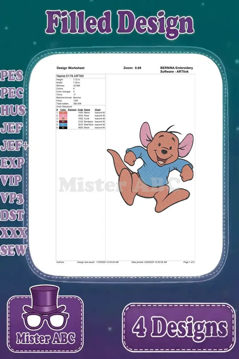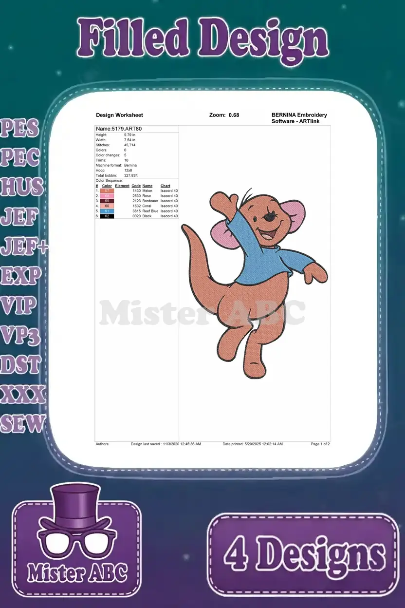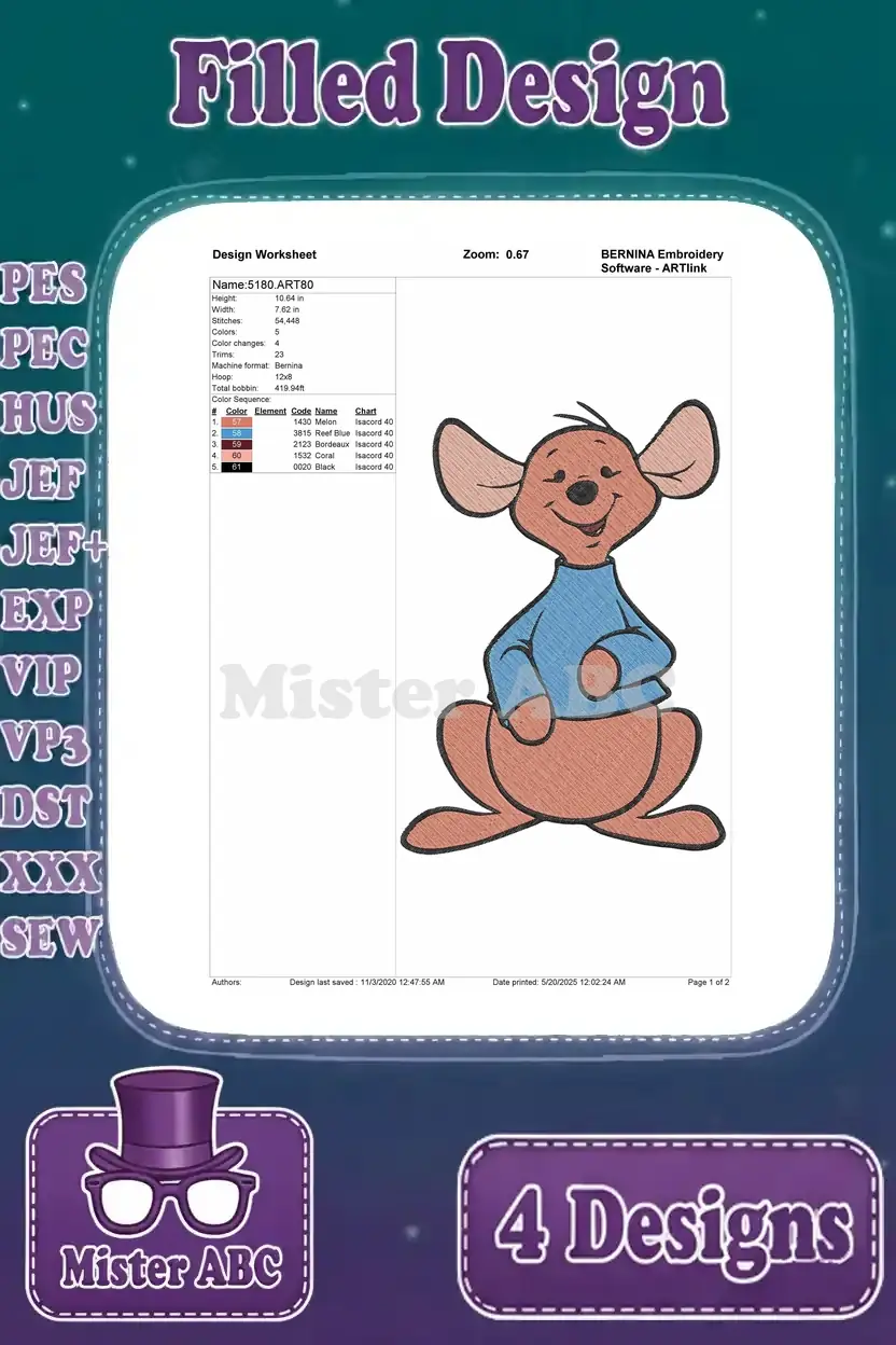Disney Winnie Pooh Roo Kangaroo Standing Walking Cute Blue Shirt Poses – Filled Embroidery Design