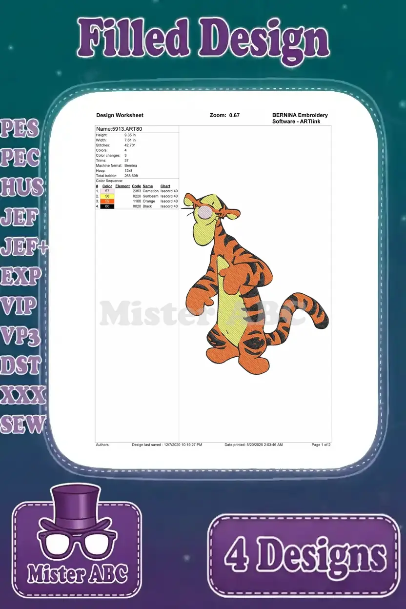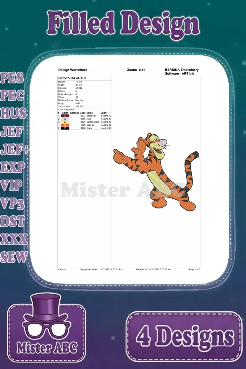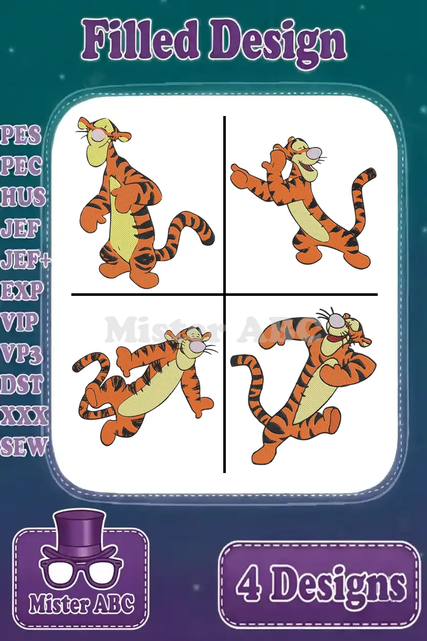 Disney Winnie Pooh Tigger Leaping Running Bouncing Full Of Energy Tiger – Filled Embroidery Design