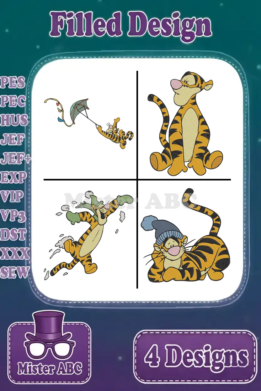 Disney Winnie Pooh Tigger Flying Kite Sitting Winter Hat Outdoor Fun – Filled Embroidery Design