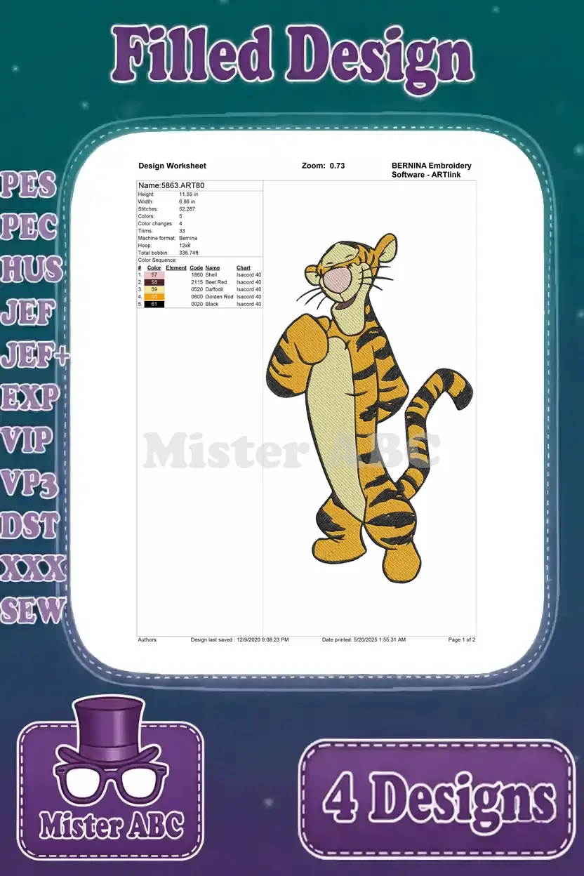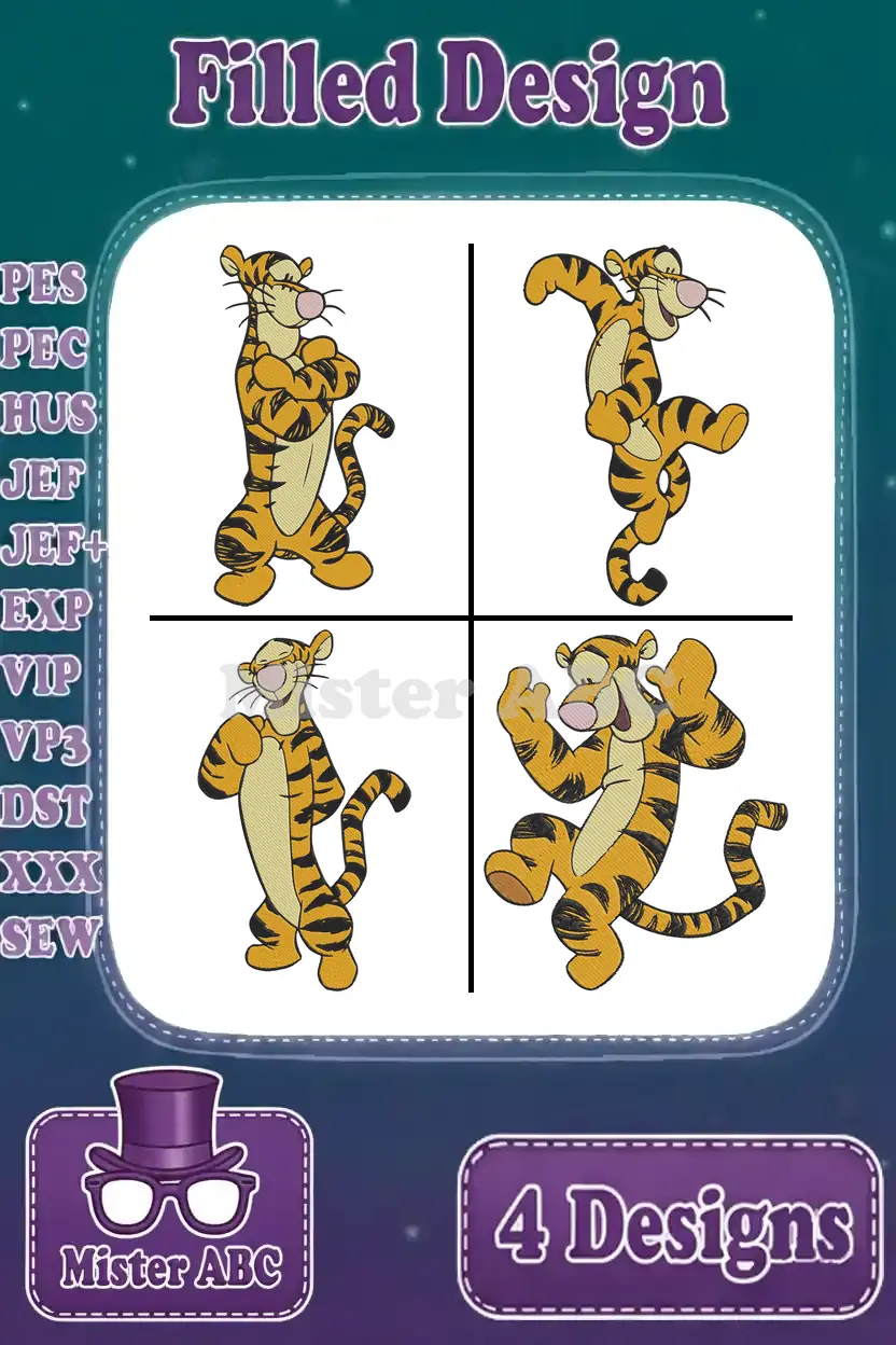 Disney Winnie Pooh Tigger Bouncing On Tail Pouncing Playful Tiger Poses Bundle – Filled Embroidery Design