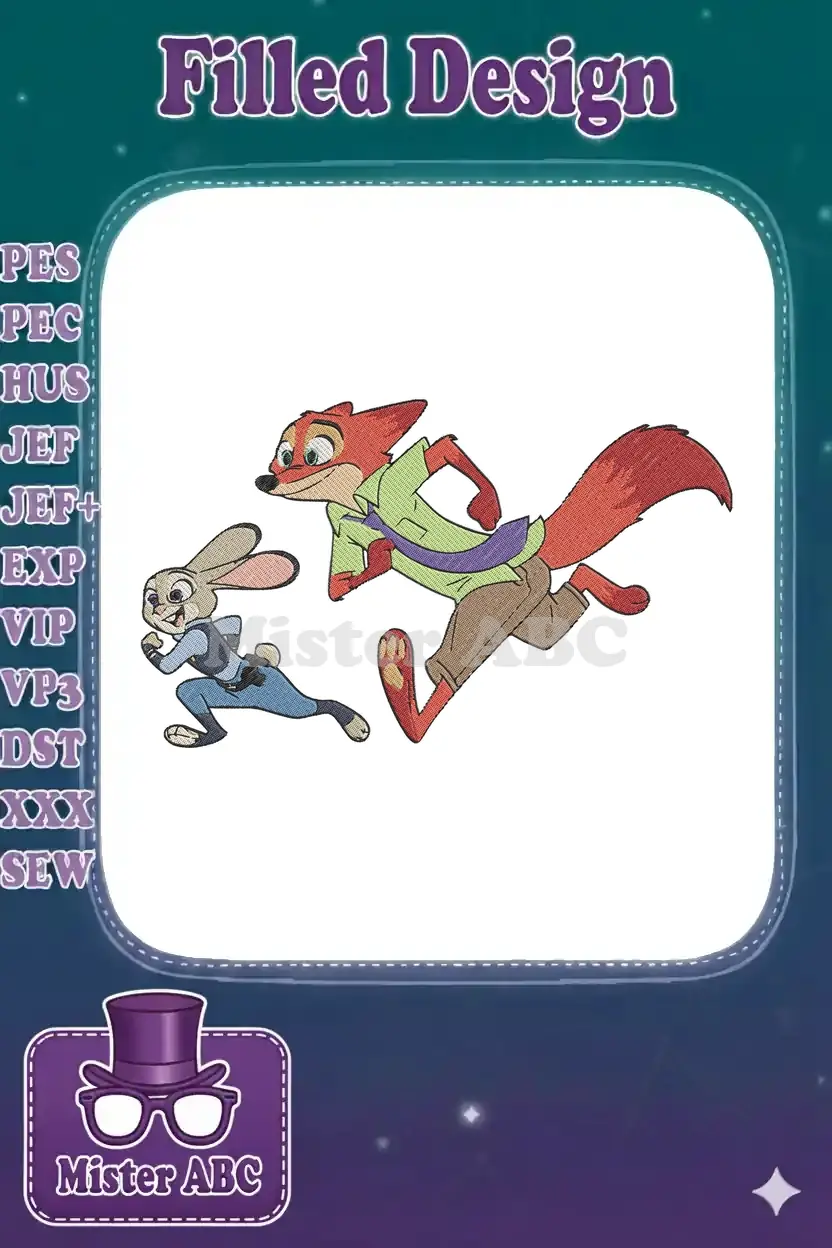 Disney Zootopia Nick Wilde Judy Hopps energetic running embroidery designs