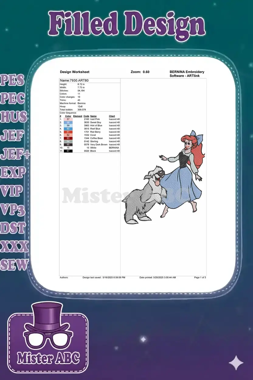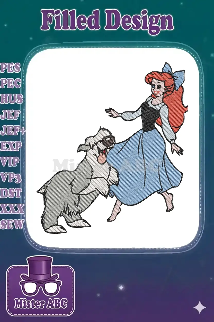 Disney’s Ariel and Max playful dog walking embroidery designs
