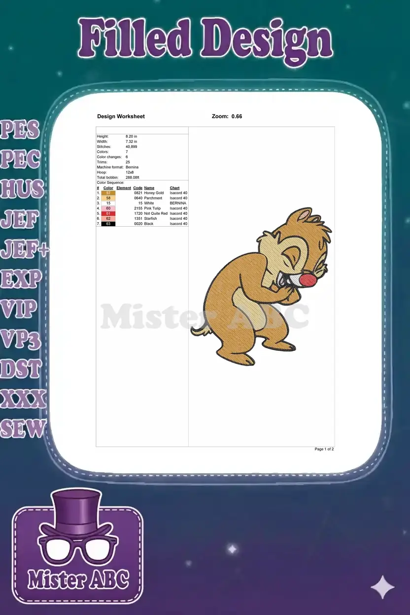 Disney’s Dale the Chipmunk Laughing Joyful Embroidery Designs