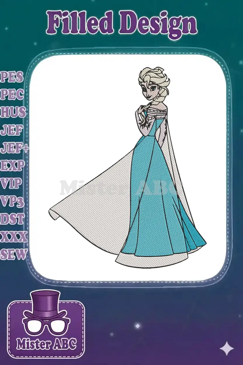 Disney’s Frozen Elsa princess blue dress cape elegant embroidery designs