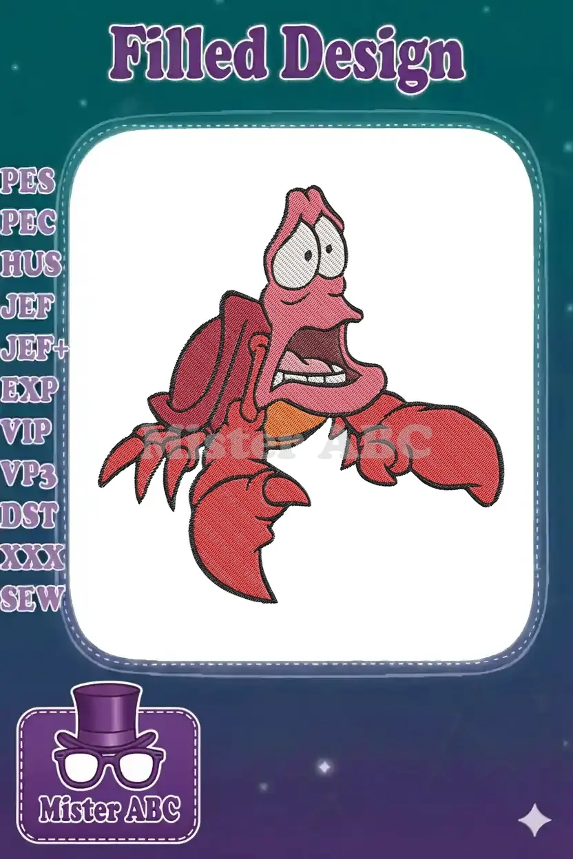 Capture Sebastian’s iconic shocked expression with this vibrant embroidery design. Perfect for Disney fans and crafters!