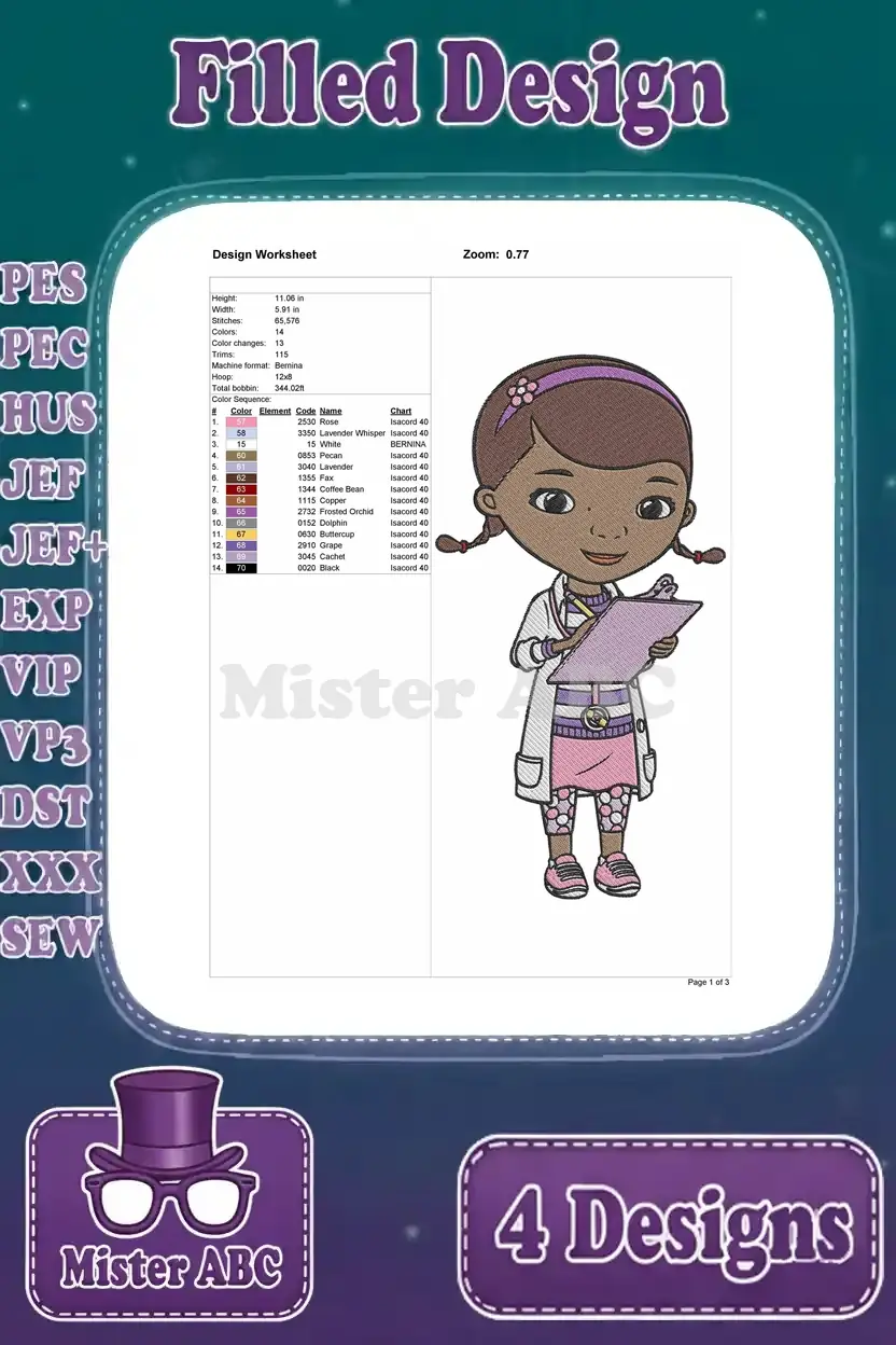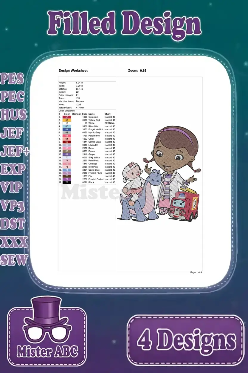 Doc Mcstuffins – Doc – Lambie – Chilly – Stuffy – Findo The Dog – Clinic Friends – Filled Embroidery Design