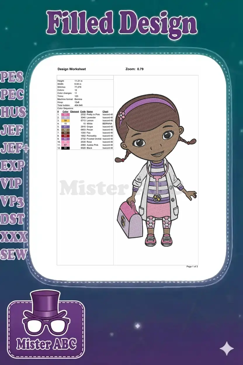 Doc McStuffins girl doctor cartoon character embroidery designs