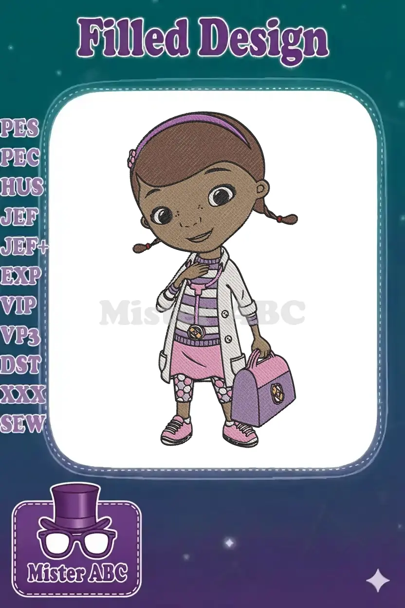 Doc McStuffins inspired girl doctor cartoon character embroidery designs