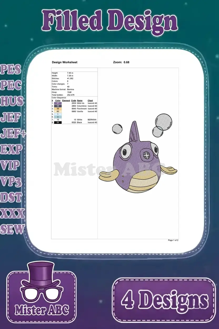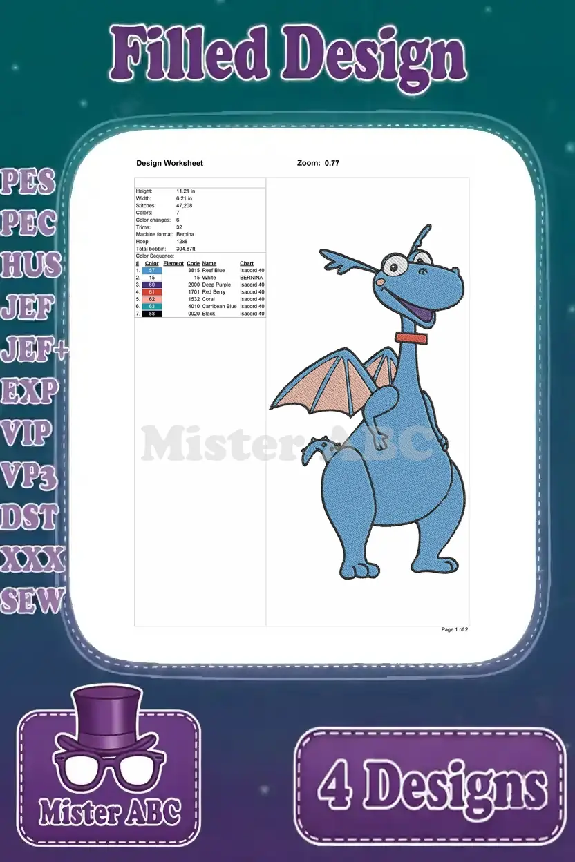 Doc Mcstuffins – Squeakers The Blue Fish – Stuffy The Brave Dragon – Toy Buddies – Filled Embroidery Design