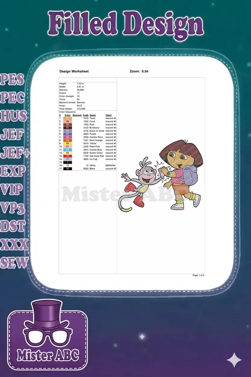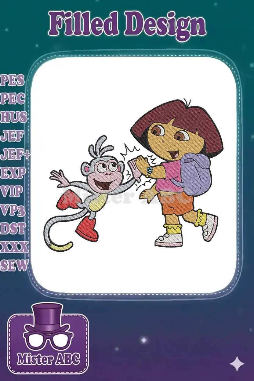 Dora the Explorer and Boots high-five friendship embroidery designs