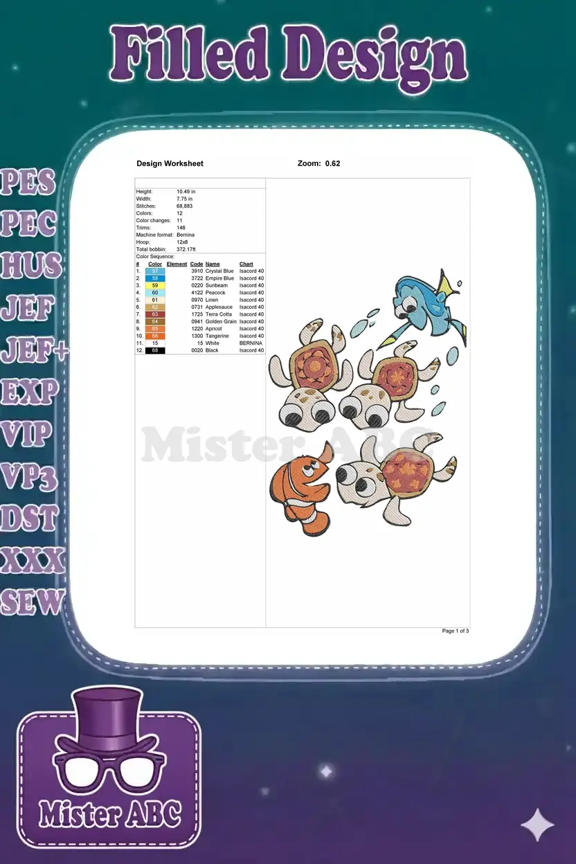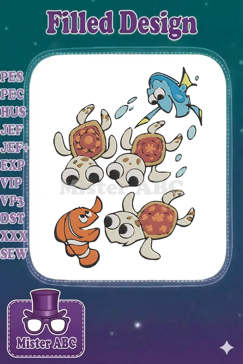 Dory Nemo and cute baby sea turtles embroidery designs