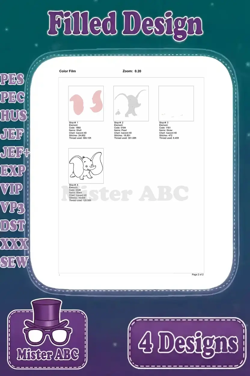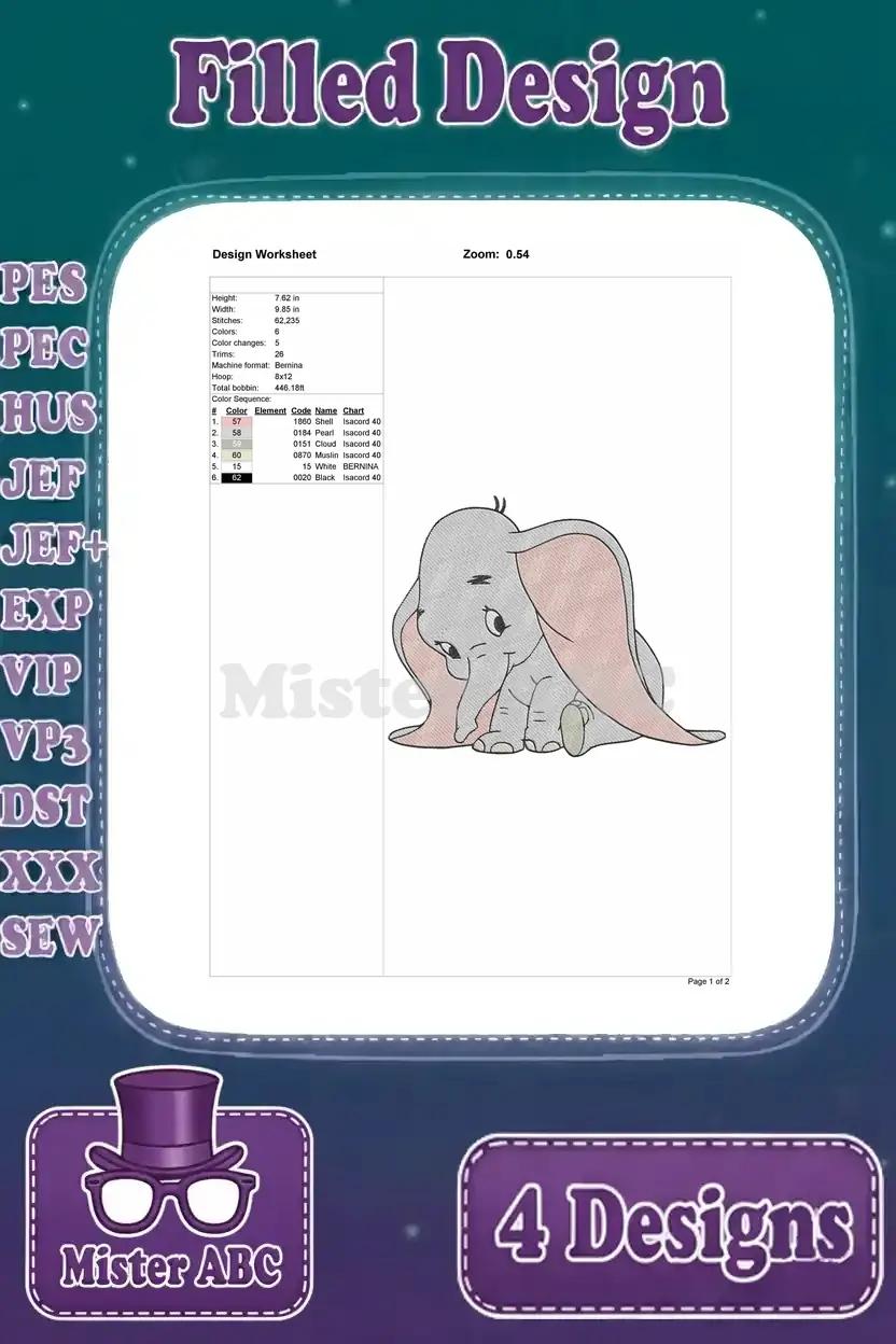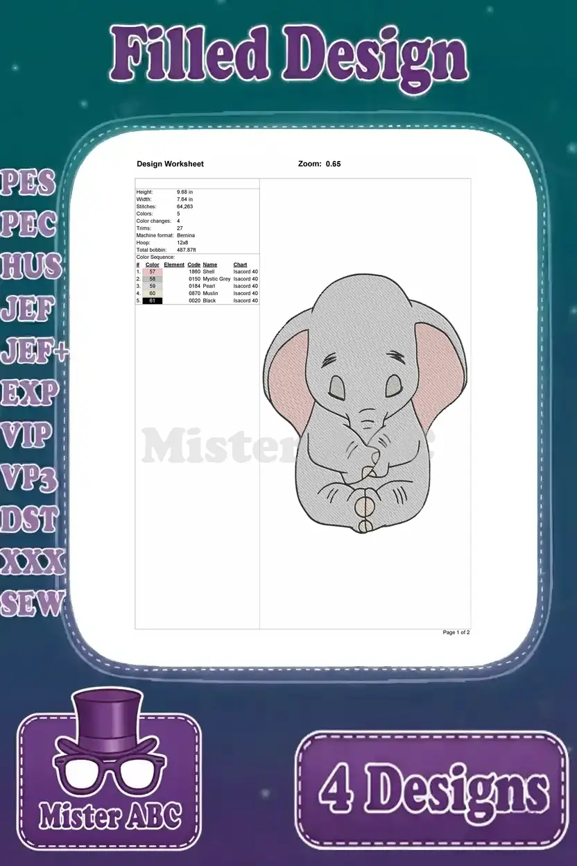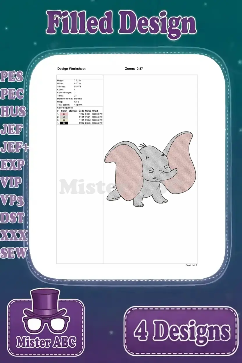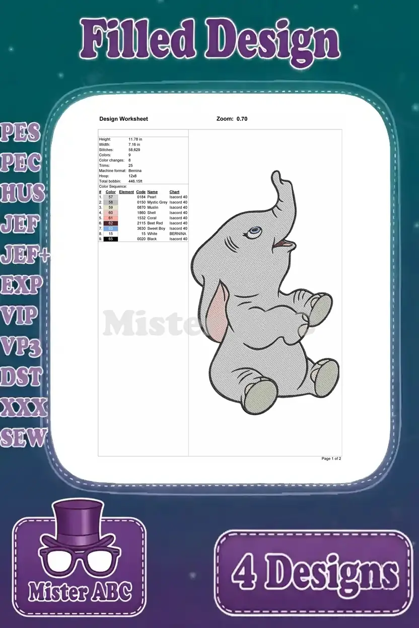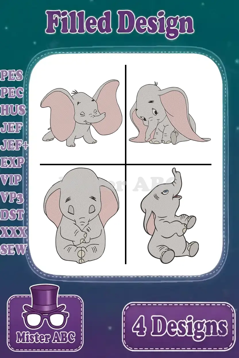Dumbo Baby Elephant Various Cute Sitting And Standing Poses Character – Filled Embroidery Design