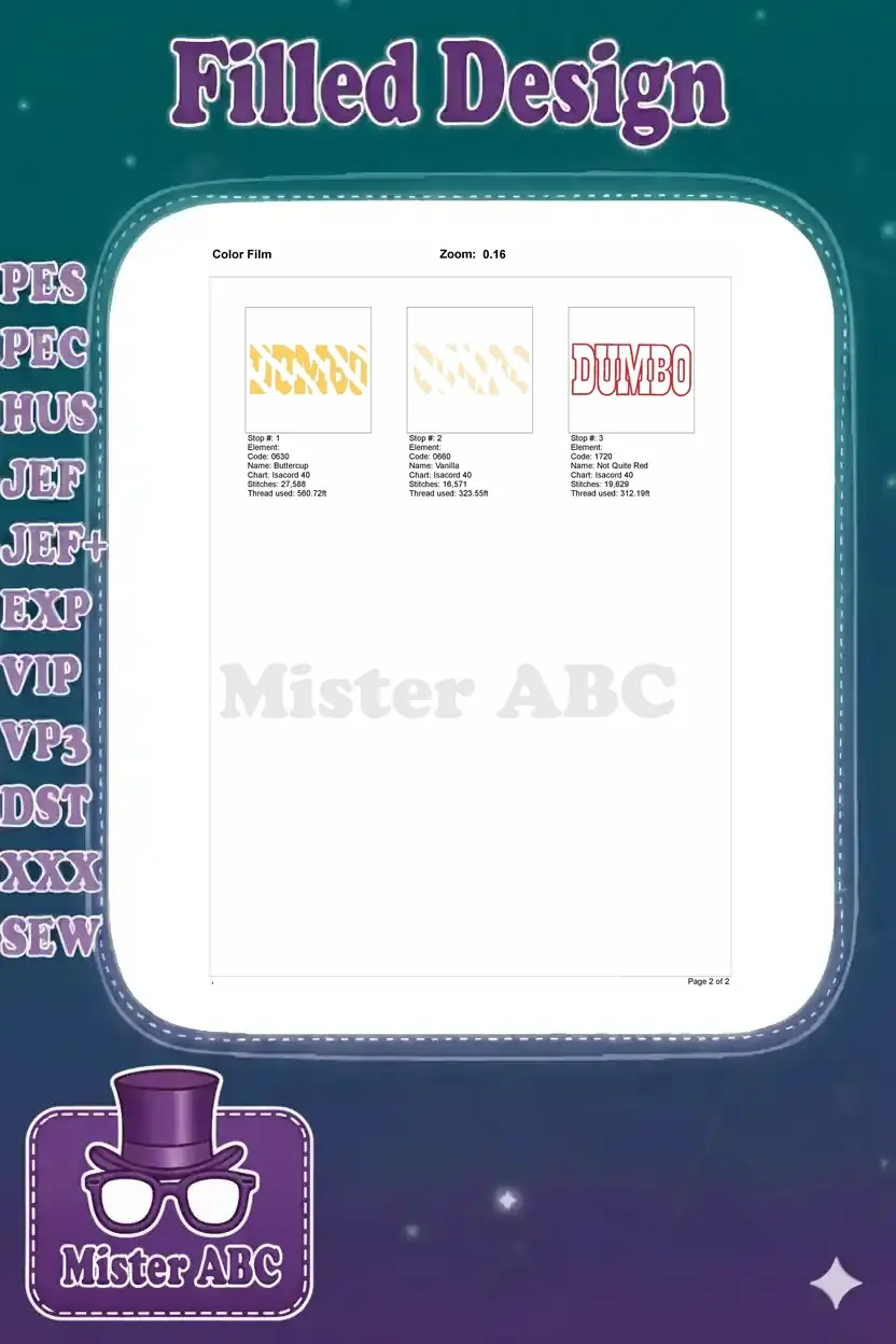 Dumbo movie title striped letter embroidery designs for children’s apparel – Instant Download