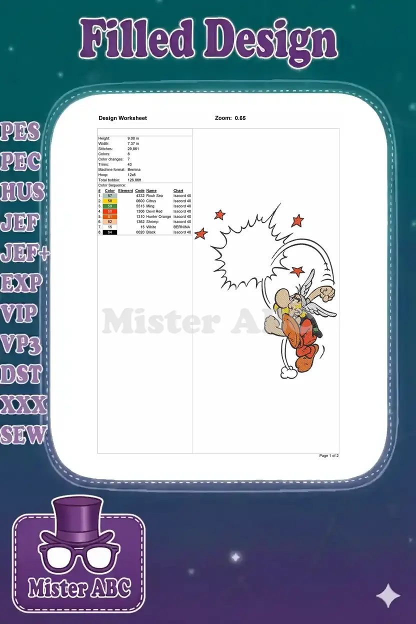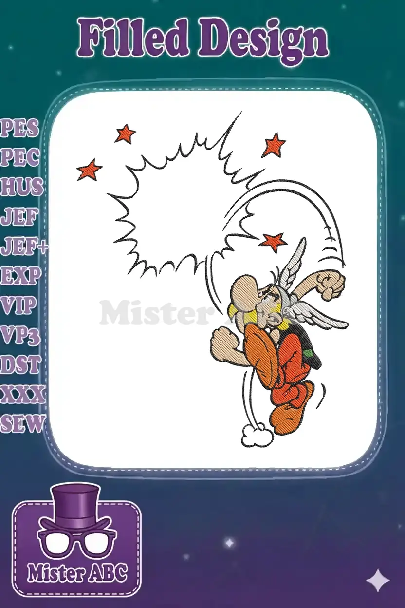 Unleash the spirit of adventure with this vibrant Asterix embroidery design, perfect for fans of the Gaulish hero.
