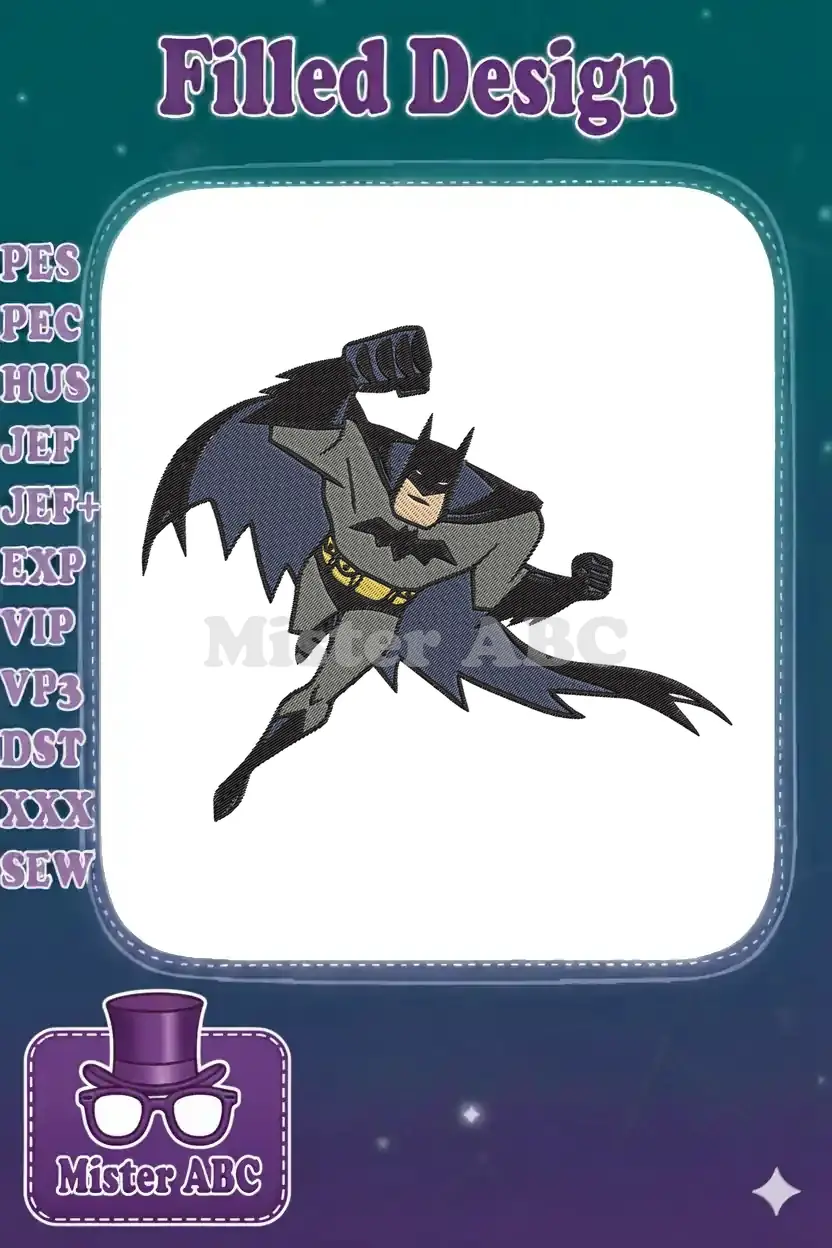 Dynamic Batman superhero action embroidery designs for fans