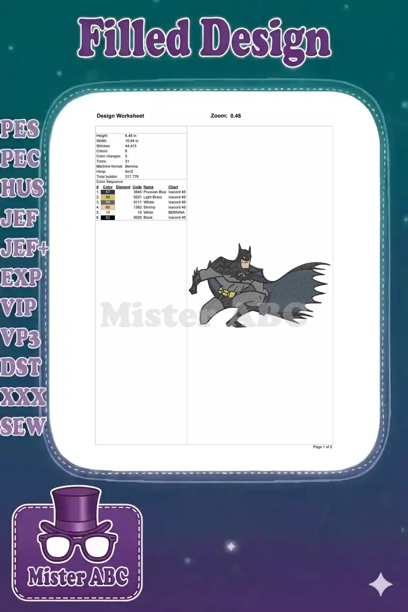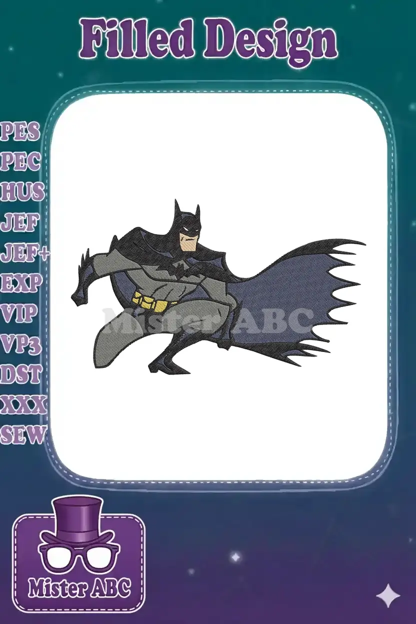Dynamic Batman Superhero Cartoon Embroidery Designs for Comic Fans