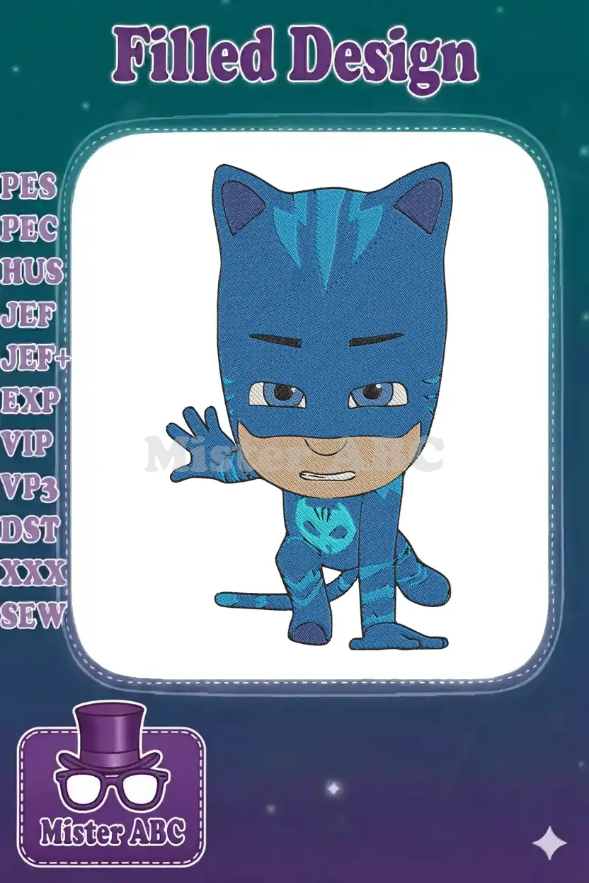 Dynamic Blue Catboy PJ Masks Cartoon Character Embroidery Designs – Instant Download