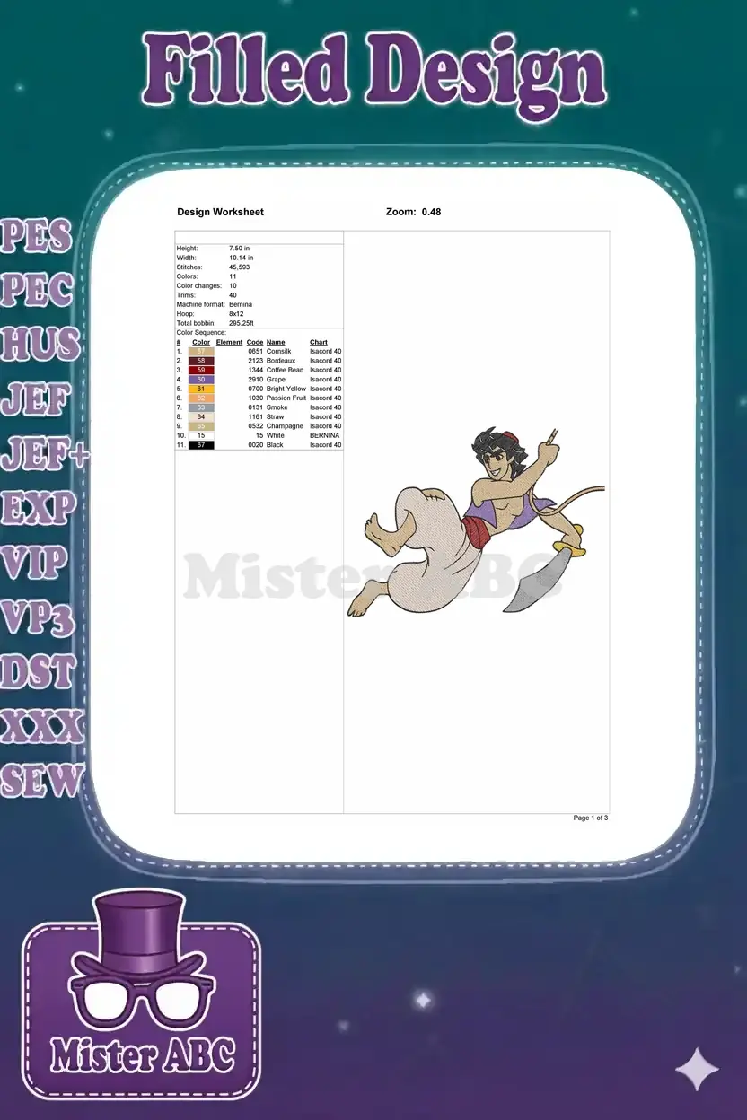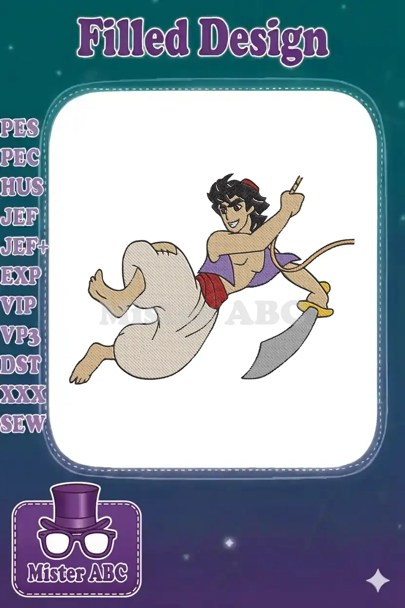 Dynamic Disney Aladdin hero with sword embroidery designs