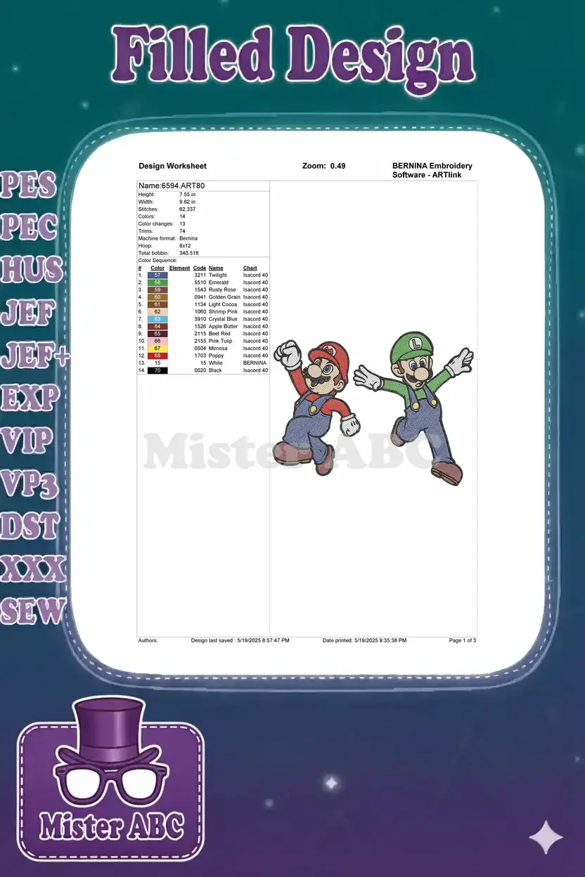 Dynamic Mario and Luigi Brothers Adventure Embroidery Designs