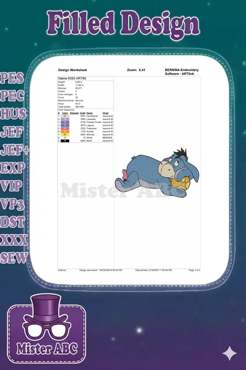 Eeyore blue donkey sad resting with yellow pinwheel embroidery designs