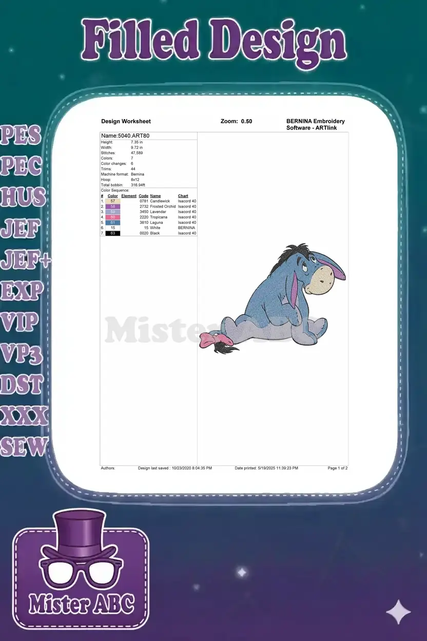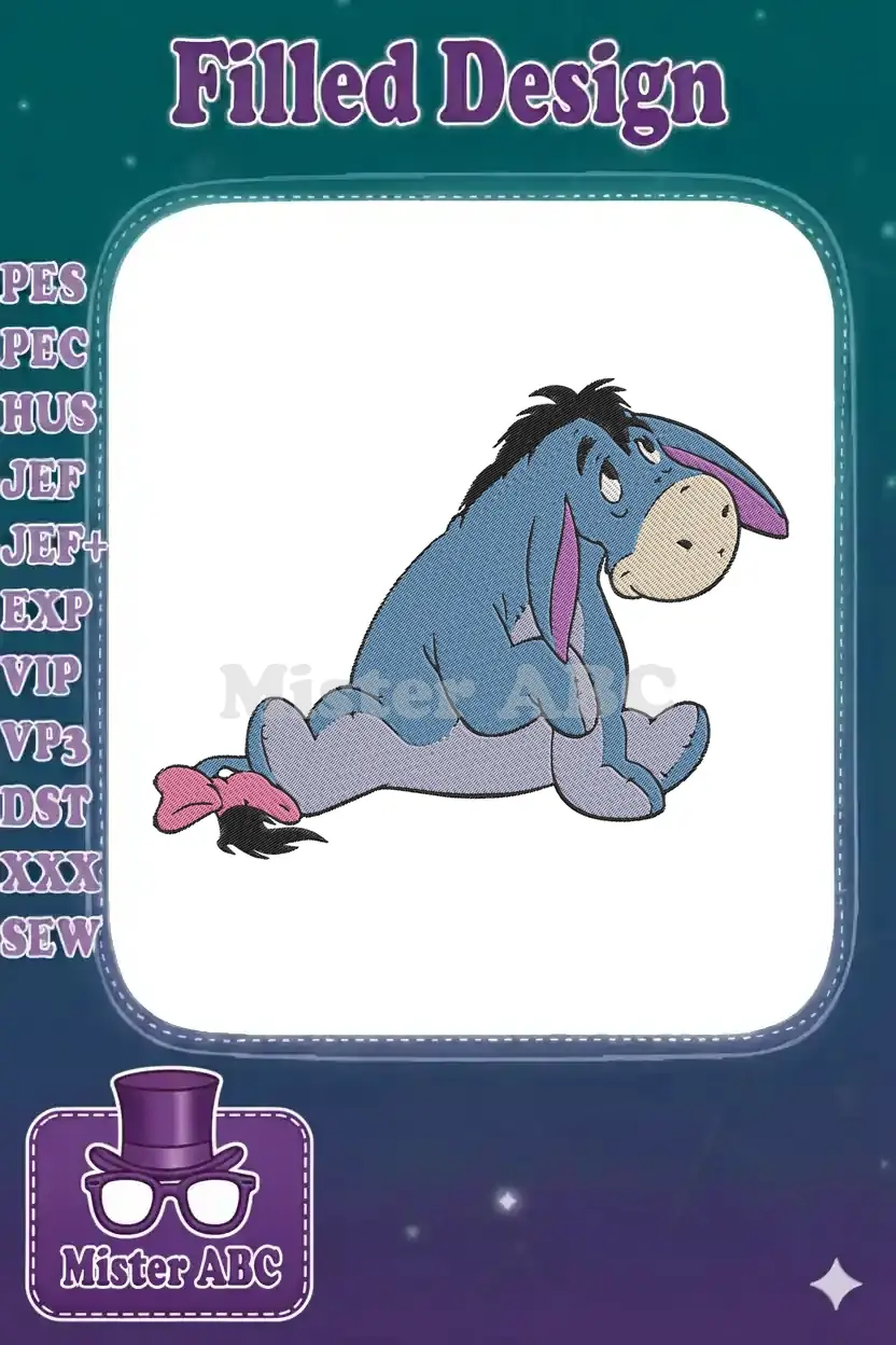 Eeyore Sad Blue Donkey sitting with Pink Bow Embroidery Designs