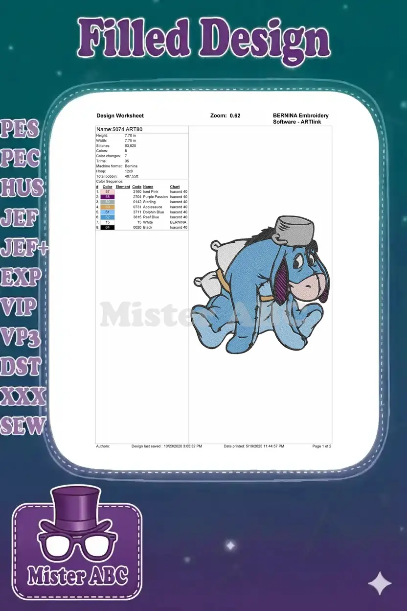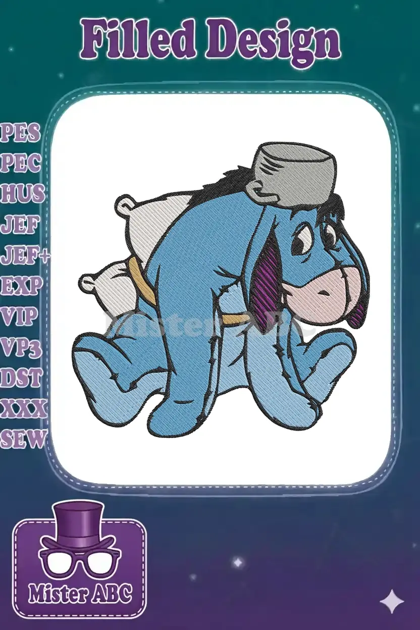 Eeyore sleeping with a pillow and pot embroidery designs