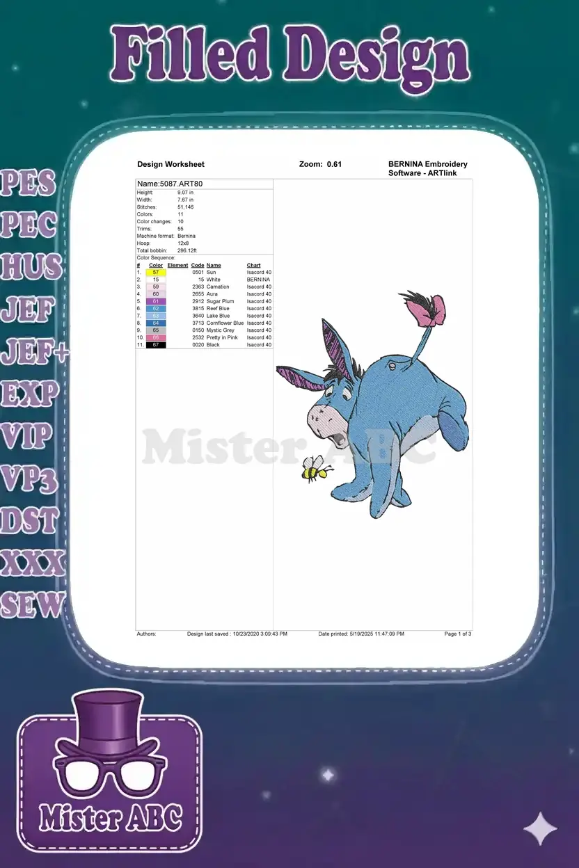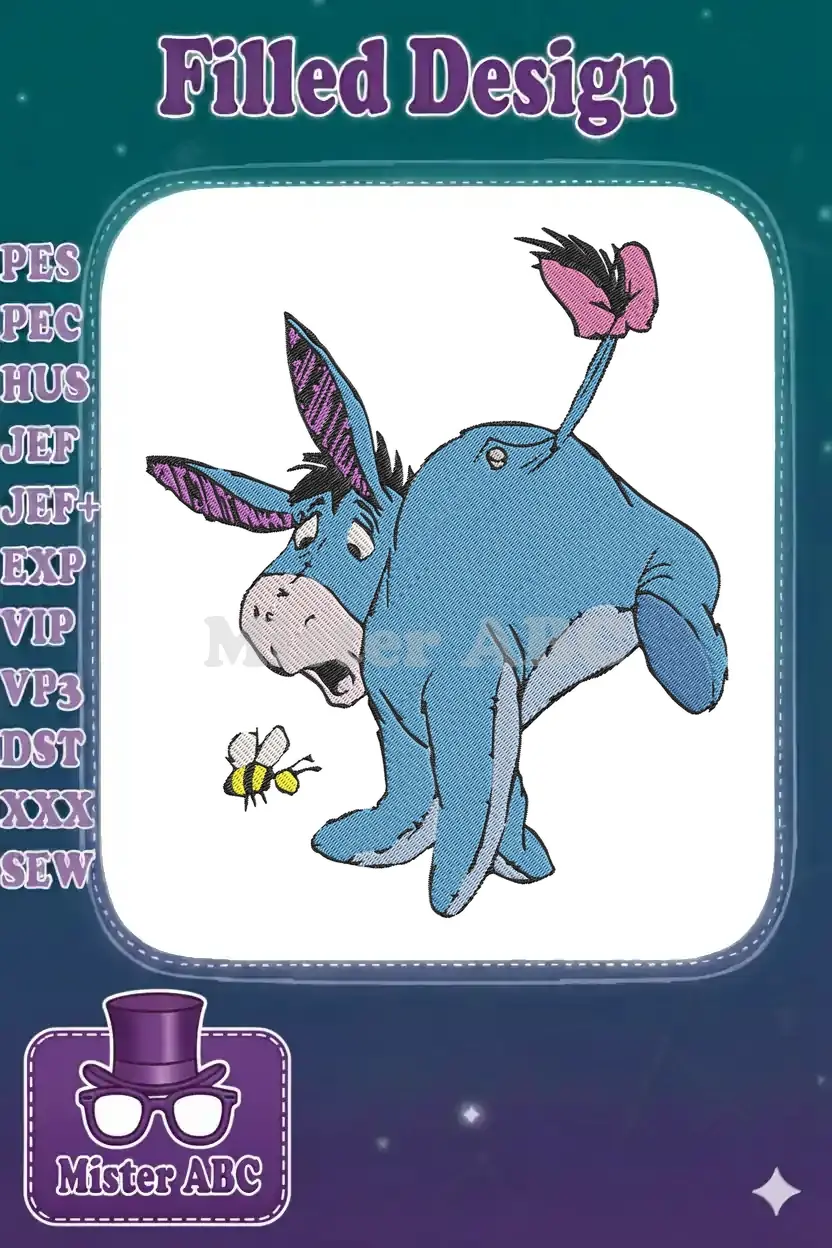 Eeyore surprised by buzzing bee classic cartoon embroidery designs