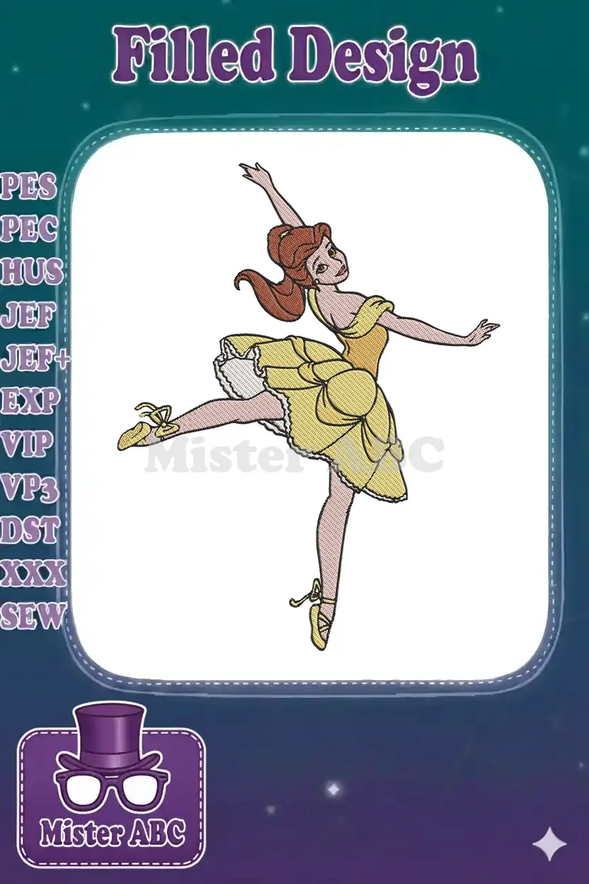 Elegant Belle Princess Ballerina Dancing Pose Yellow Dress Embroidery Designs