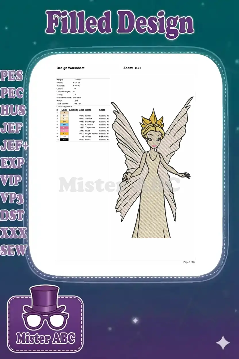 Elegant blonde fairy princess wearing a crown embroidery designs