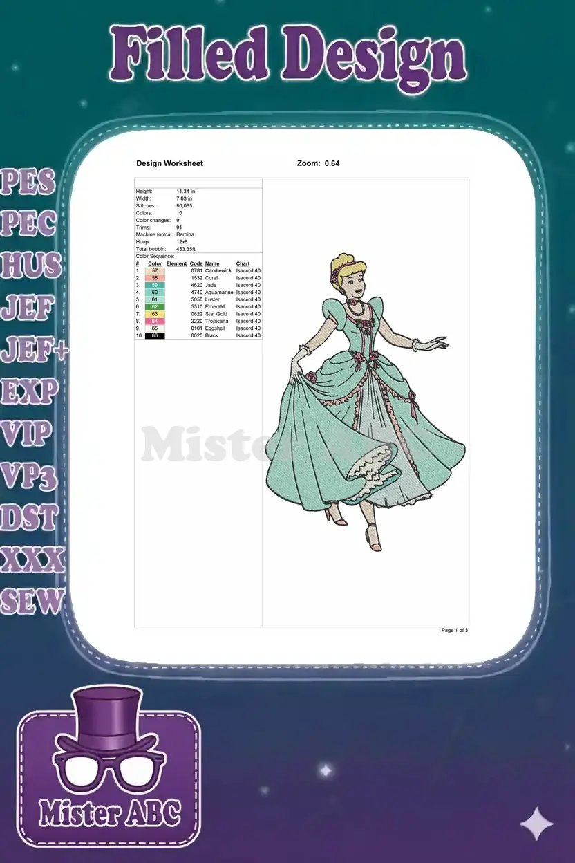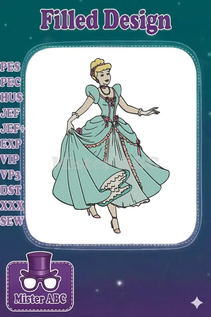 Elegant Cinderella Princess Ball Gown Teal Embroidery Designs