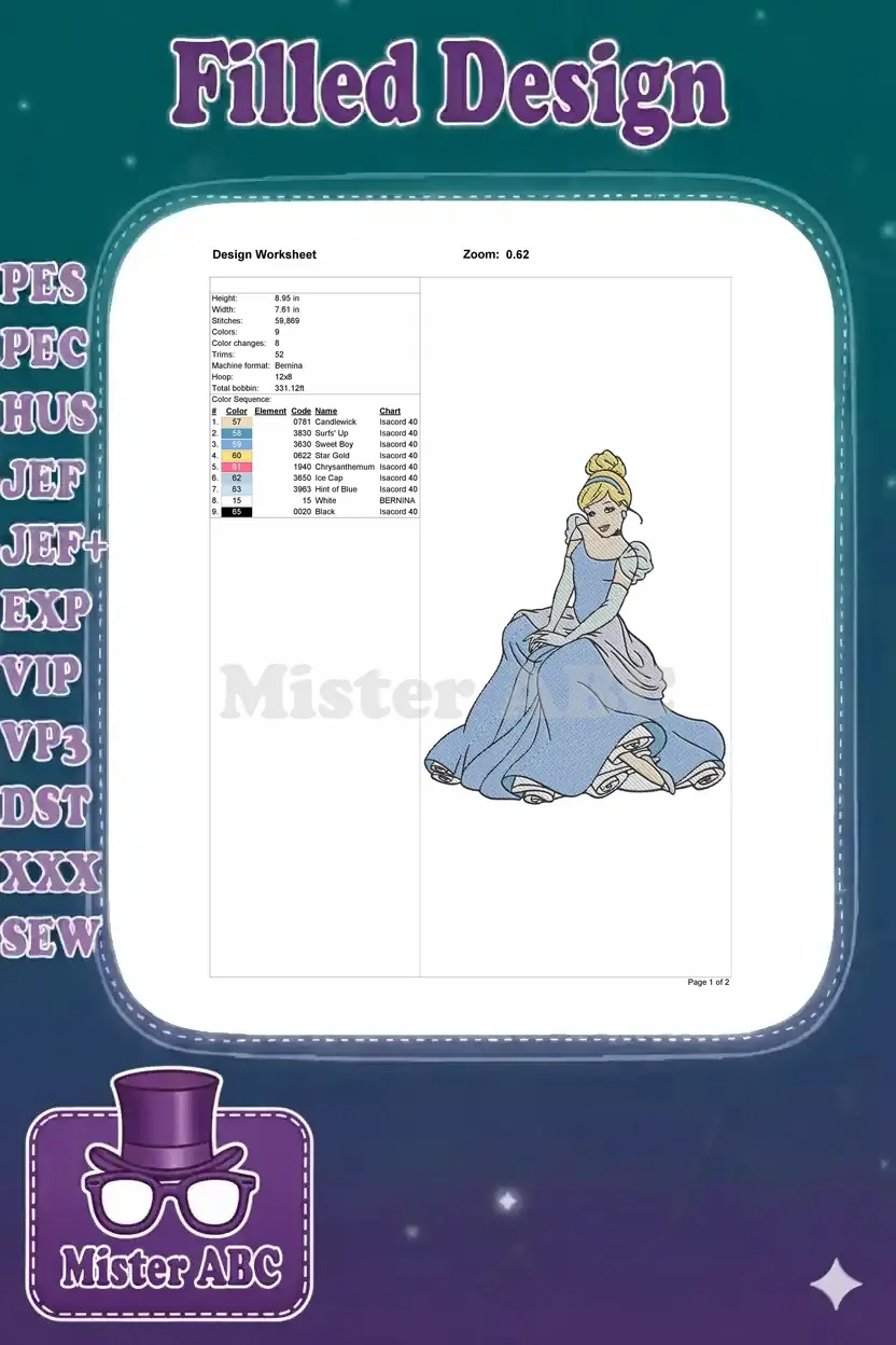 Elegant Cinderella Princess Blue Ball Gown Embroidery Designs