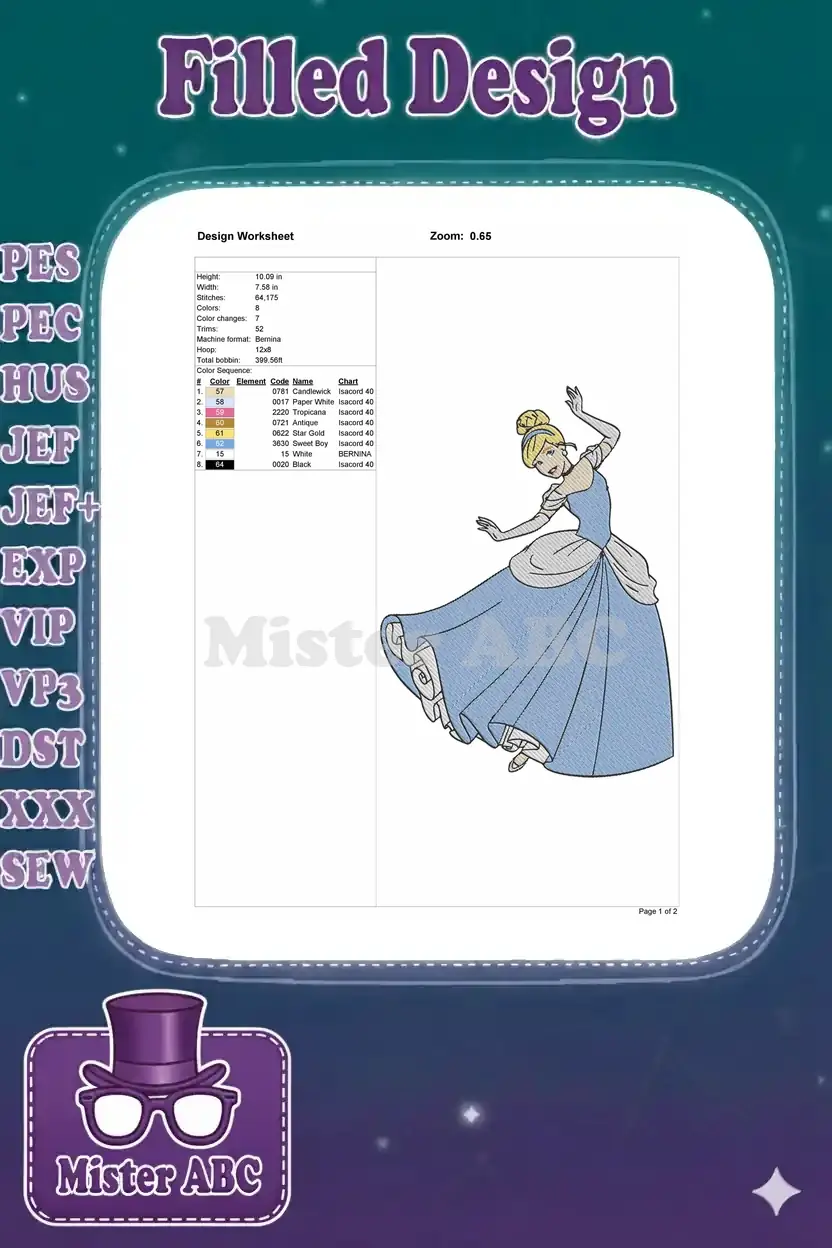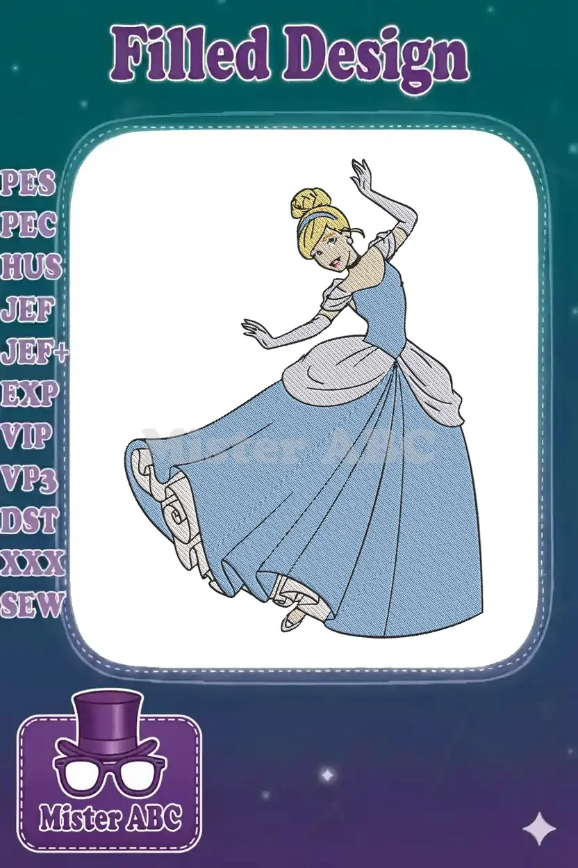 Elegant Cinderella princess in blue ball gown embroidery designs