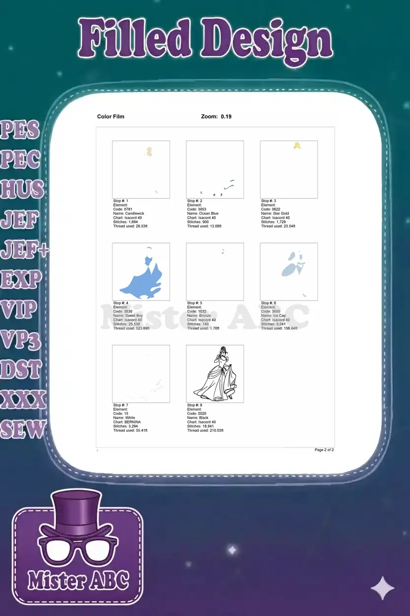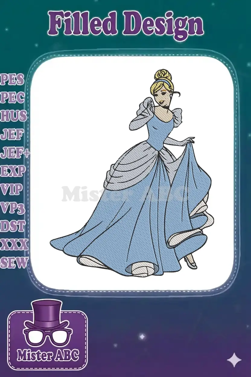 Elegant Cinderella Princess Blue Gown Fairytale Embroidery Designs