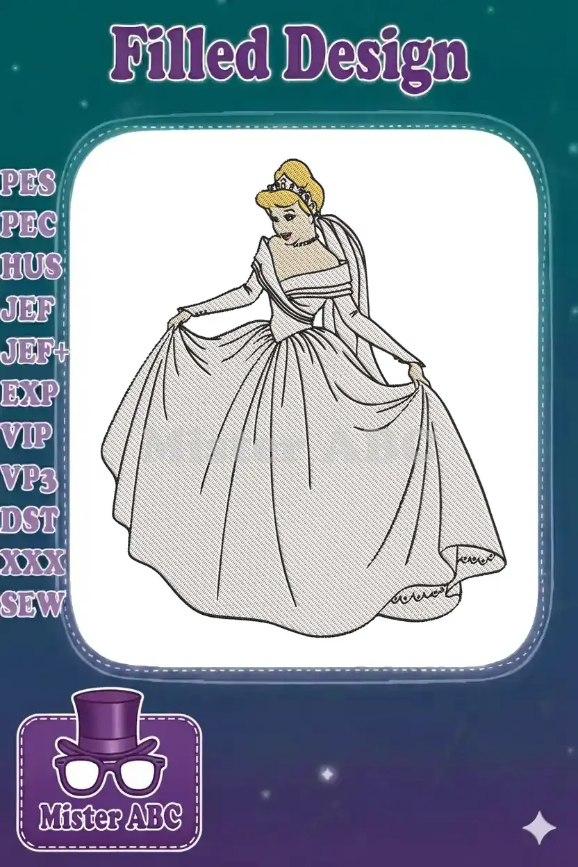 Elegant Cinderella Princess Wedding Gown Embroidery Designs for Fairytale Lovers - Instant Download Elegant Cinderella Princess Wedding Gown Embroidery Designs for Fairytale Lovers – Instant Download