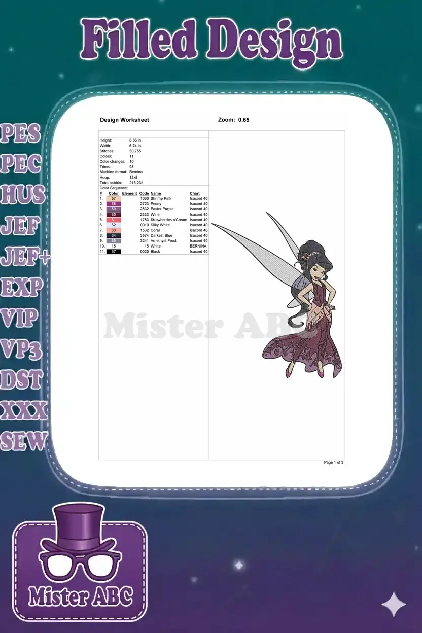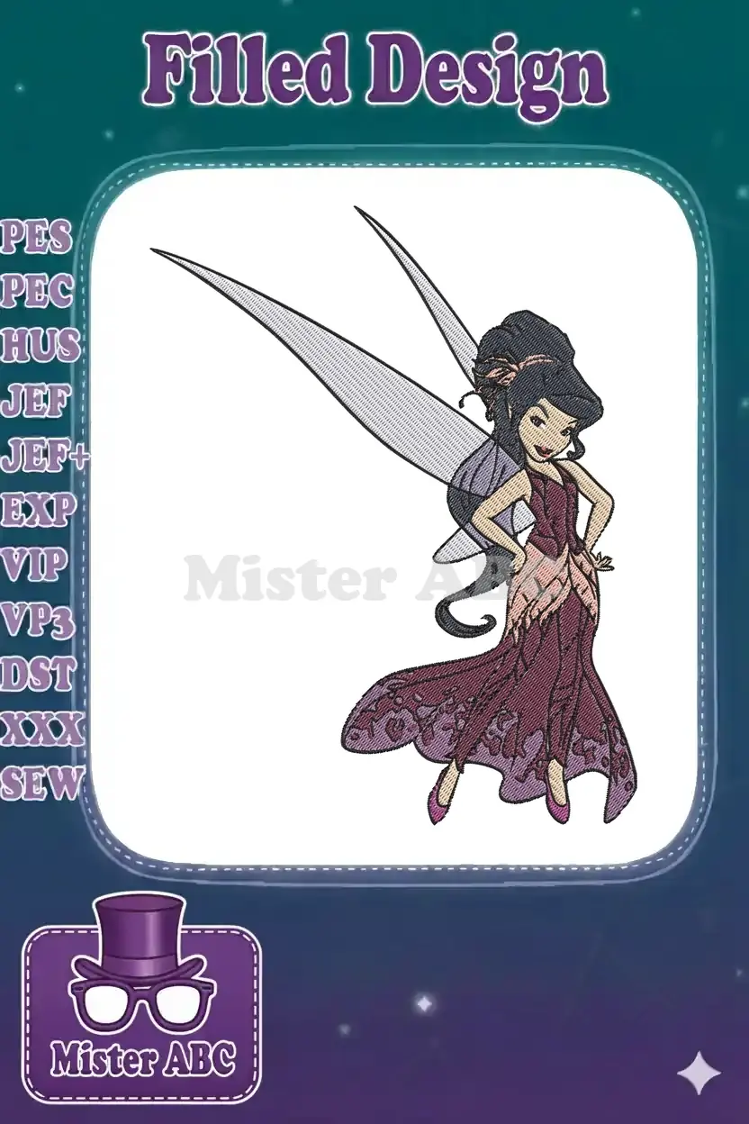 Elegant Dark Haired Fairy with Big Wings Embroidery Designs