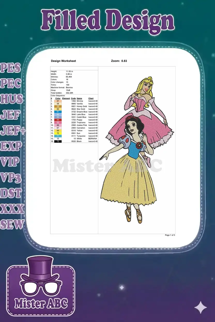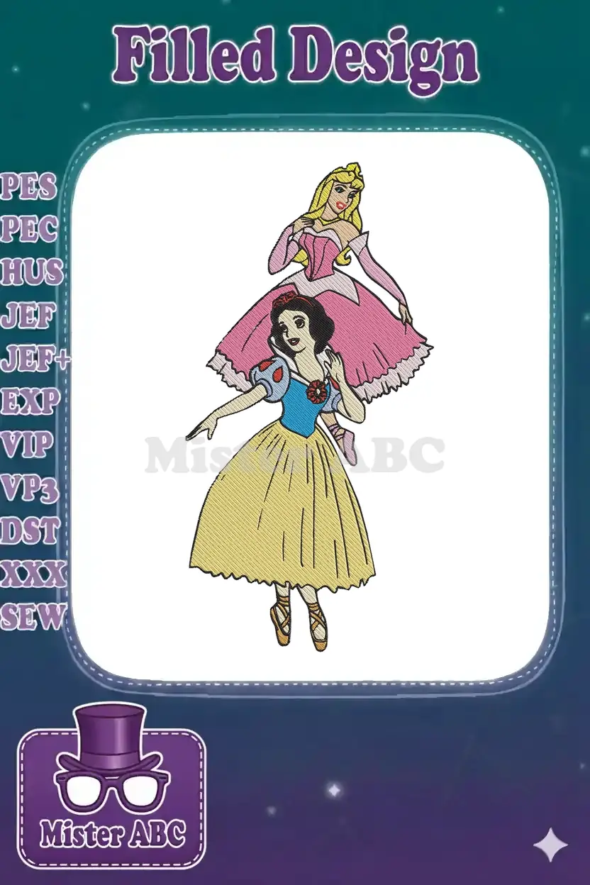 Elegant Disney Princesses Snow White Aurora Ballerina Embroidery Designs