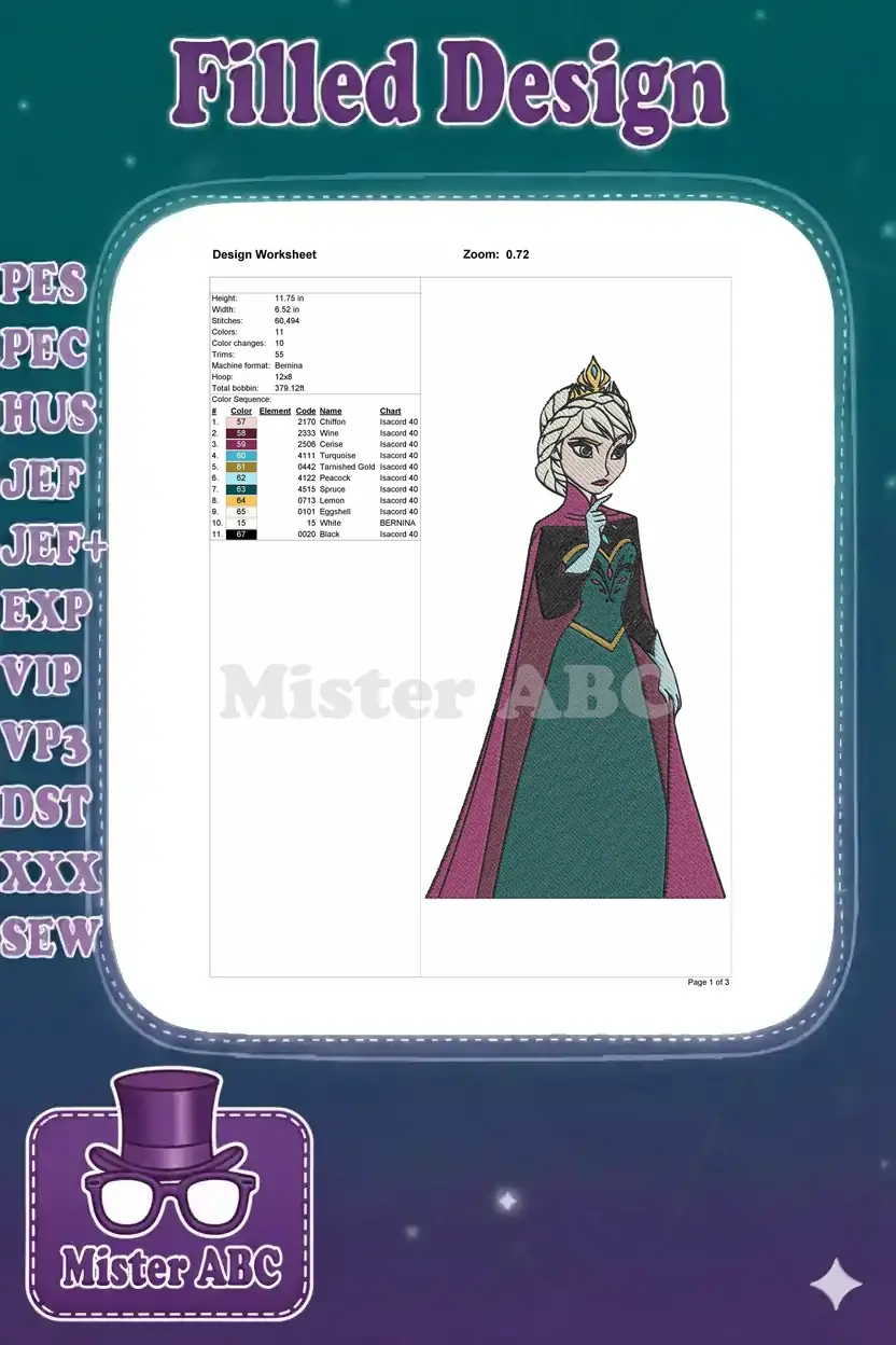 Elegant Frozen Elsa Queen blonde braid cape embroidery designs