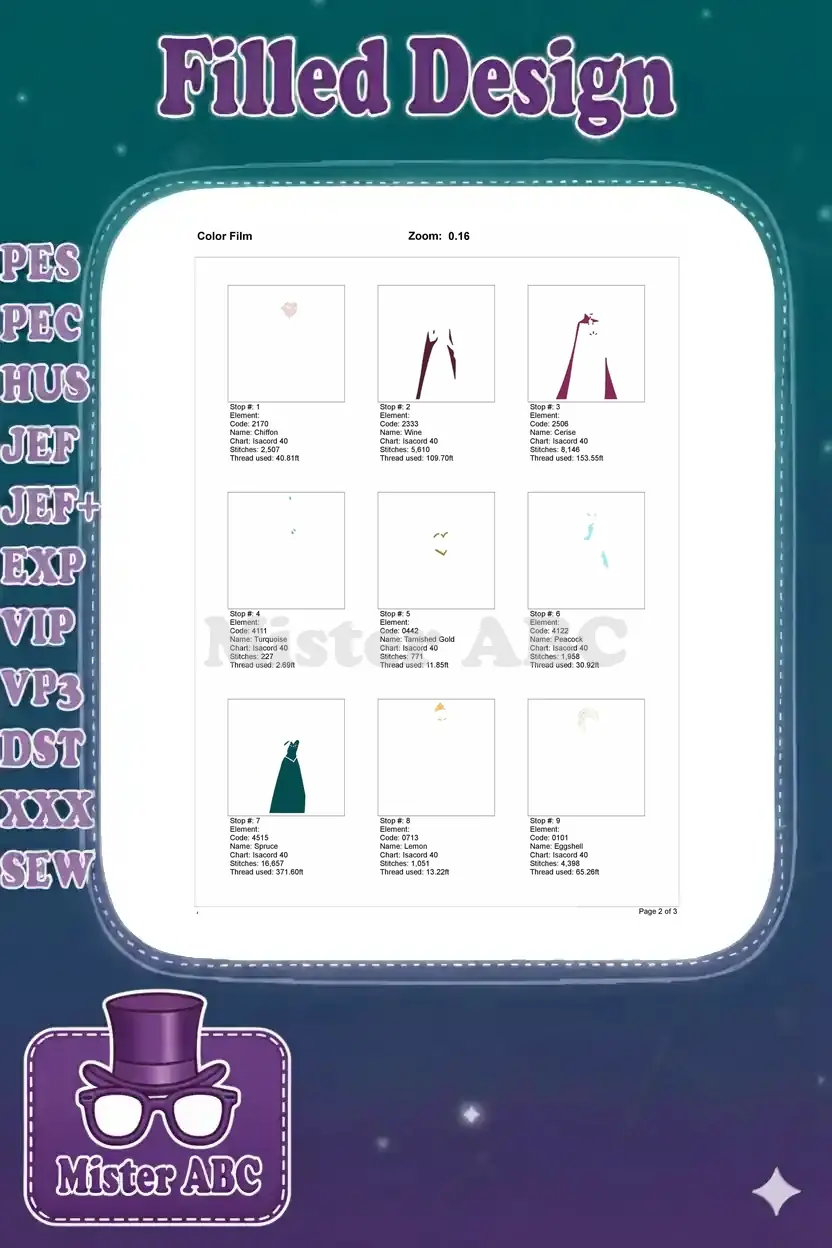 | Stitches | Colors | Thread Changes |