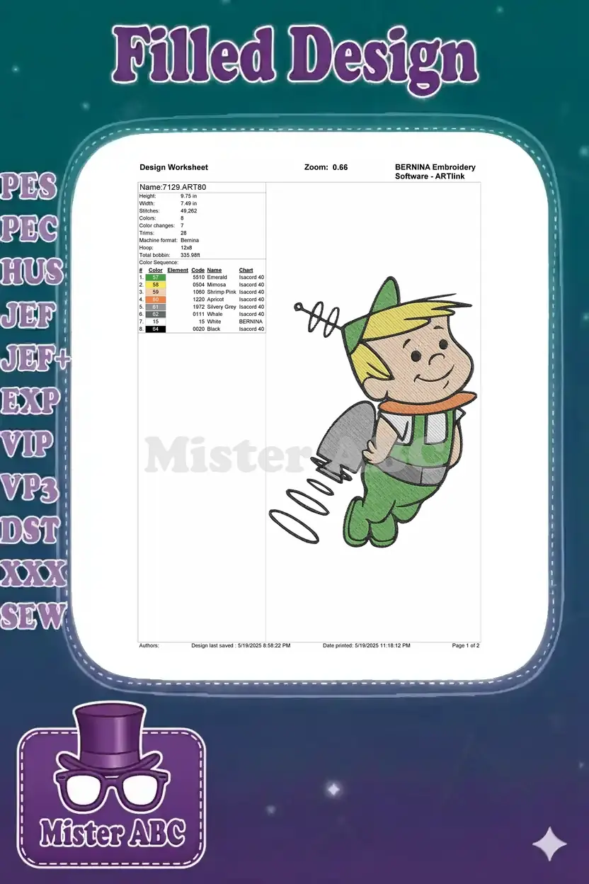 Elroy Jetson Flying with Jetpack Cartoon Embroidery Designs for Kids