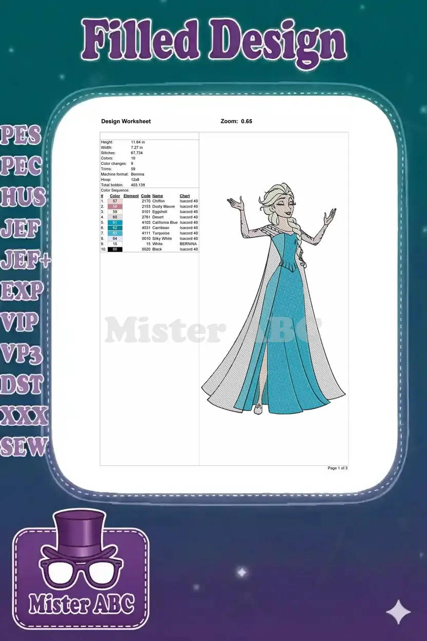 Elsa Ice Queen Blue Dress Magical Pose Embroidery Designs