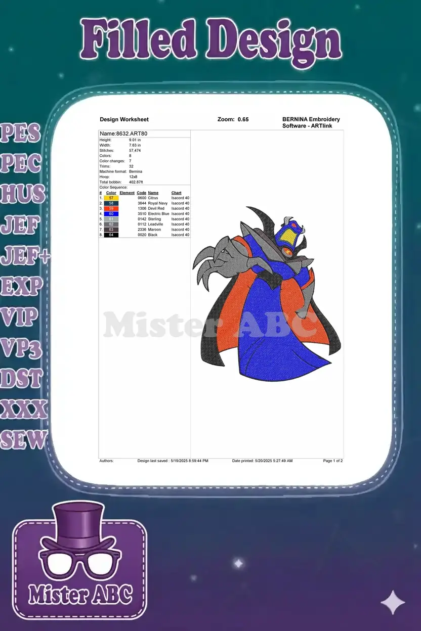 Emperor Zurg Toy Story Villain Space Embroidery Designs