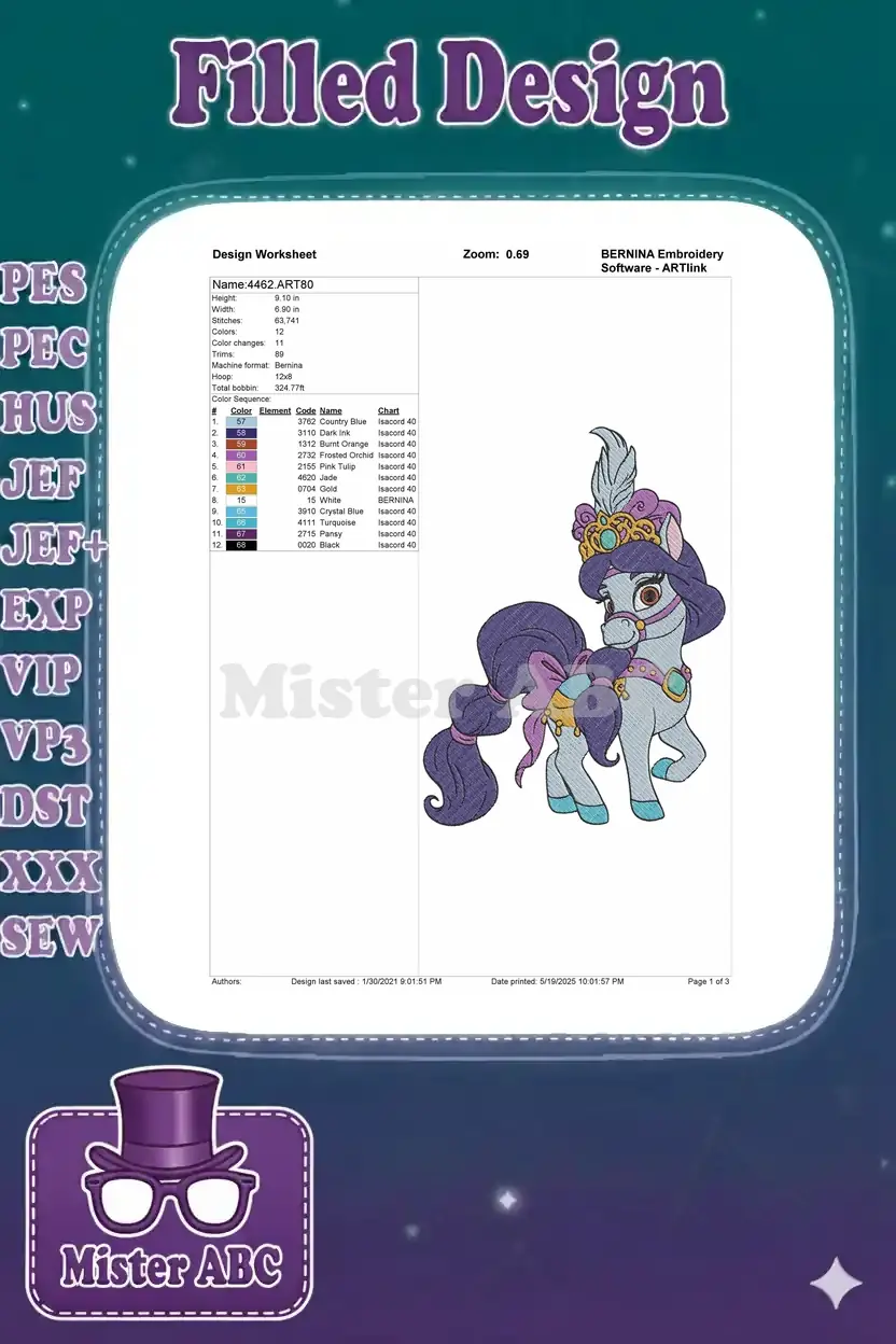 Enchanted Royal Pony with Ornate Crown and Feather Embroidery Designs