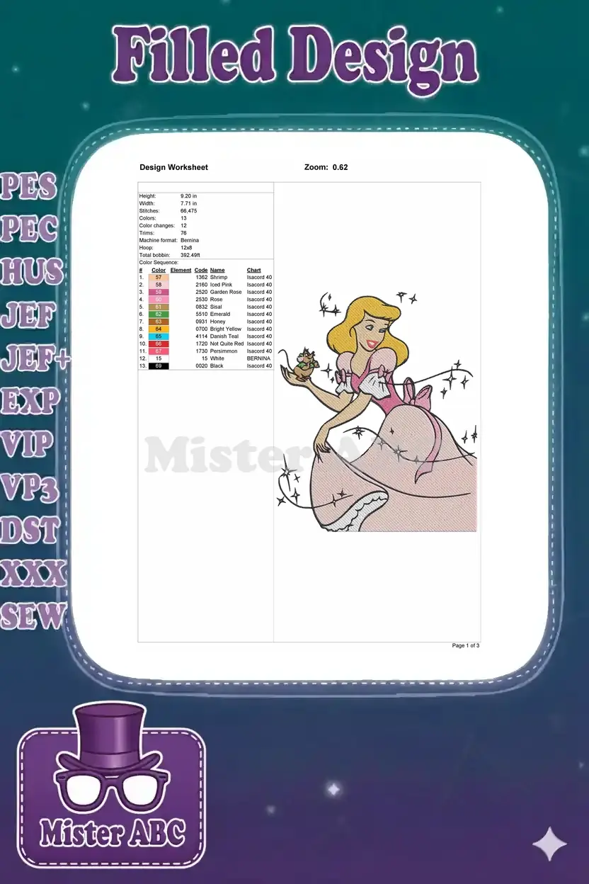 Enchanting Cinderella Princess and Gus-Gus Mouse Embroidery Designs
