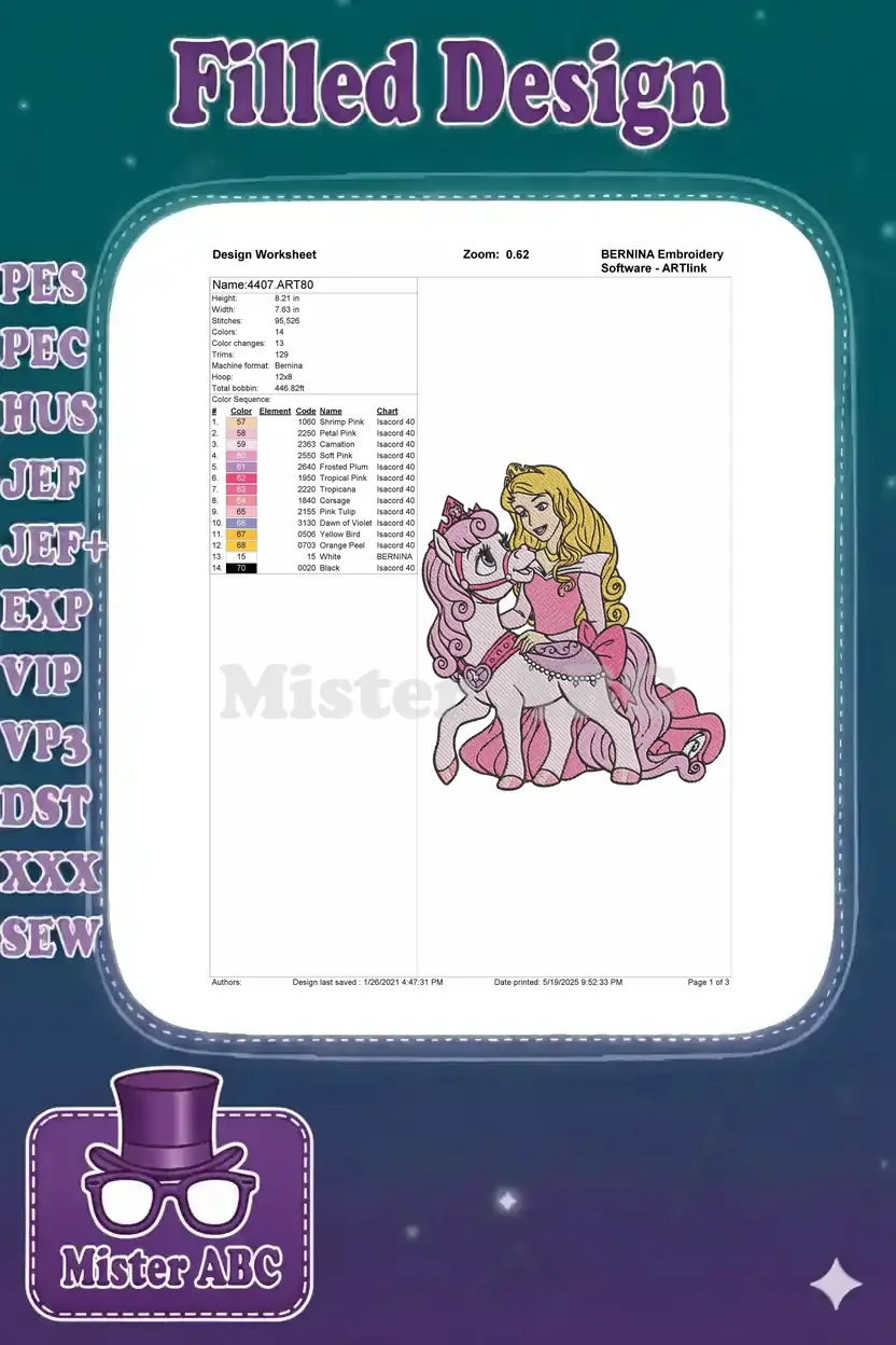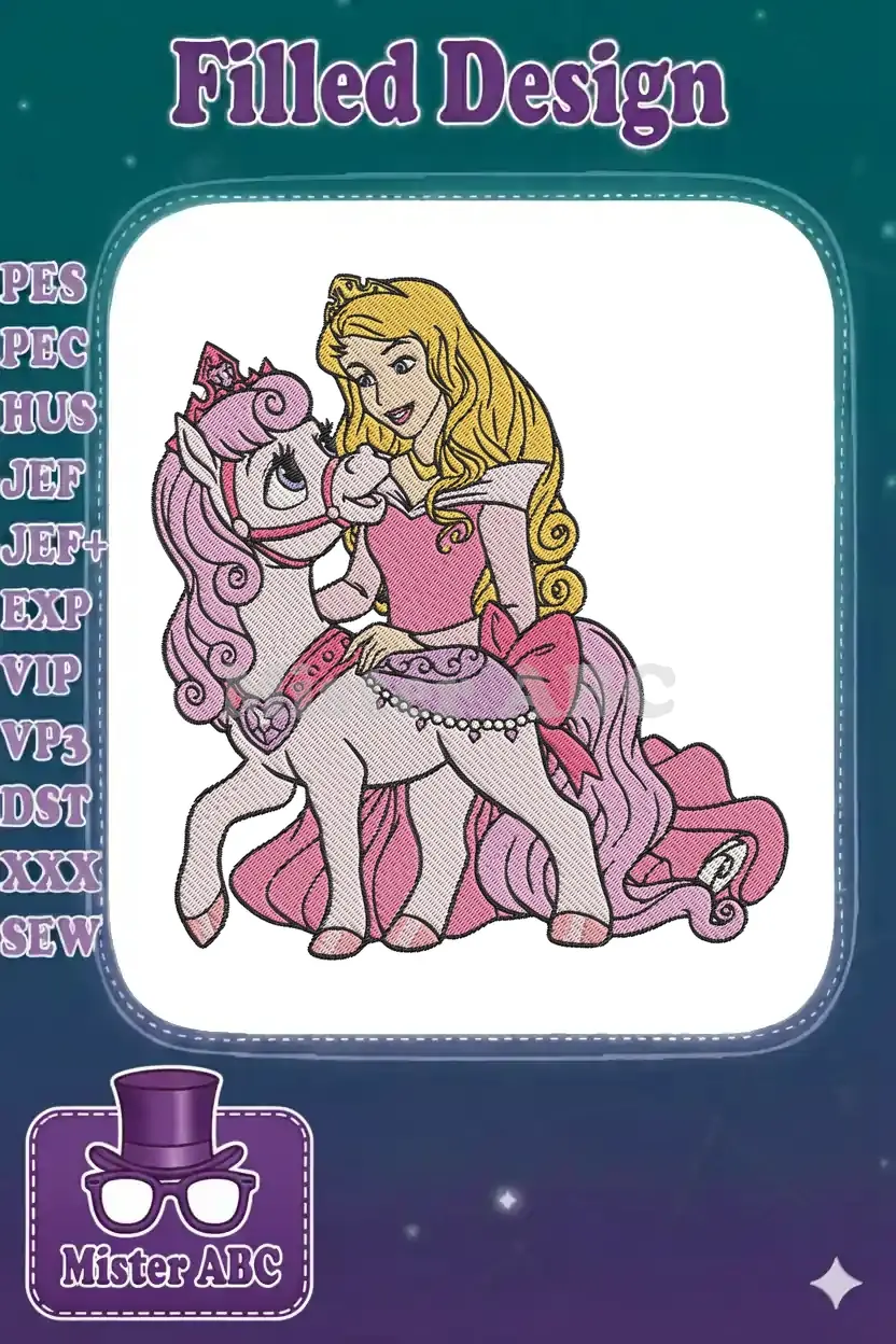 Enchanting fairy tale princess riding magical pink pony embroidery designs