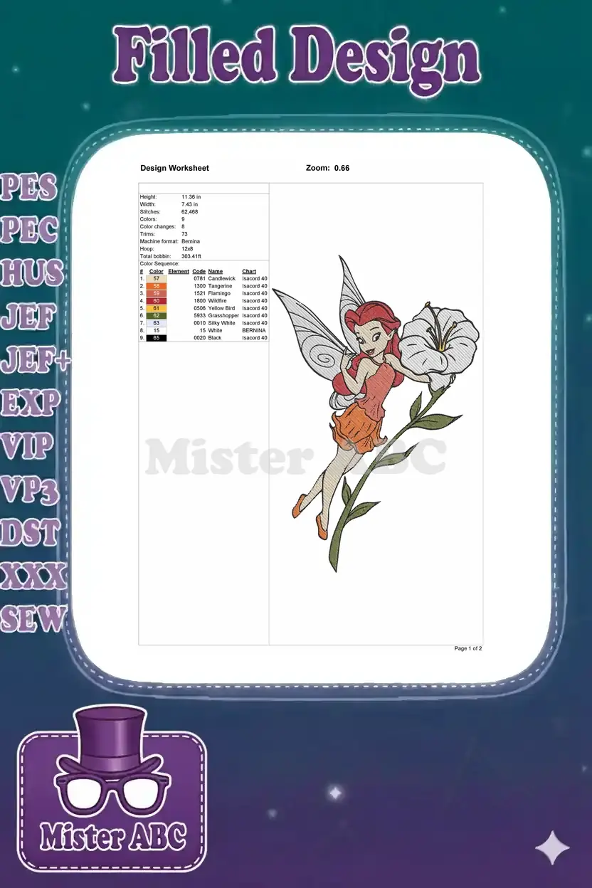Enchanting Red-Haired Fairy Holding Large Lily Flower Embroidery Designs