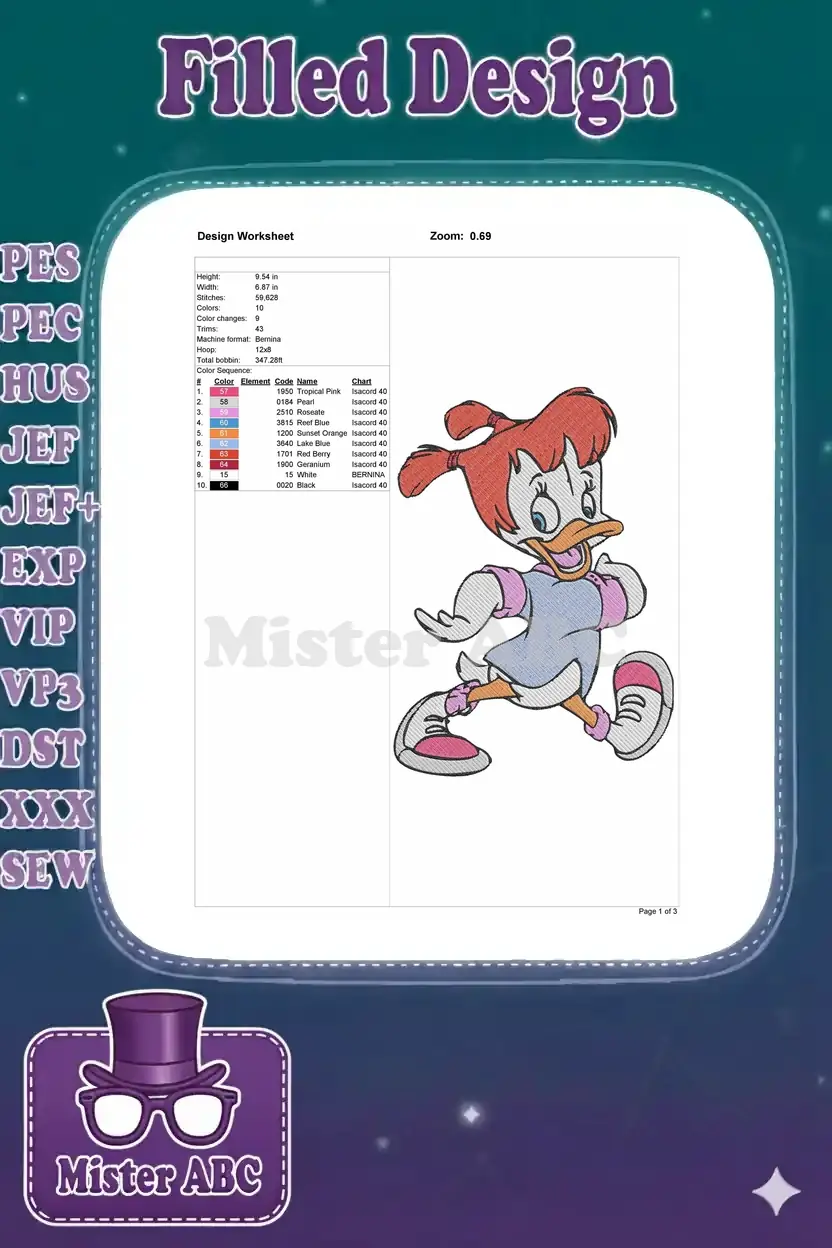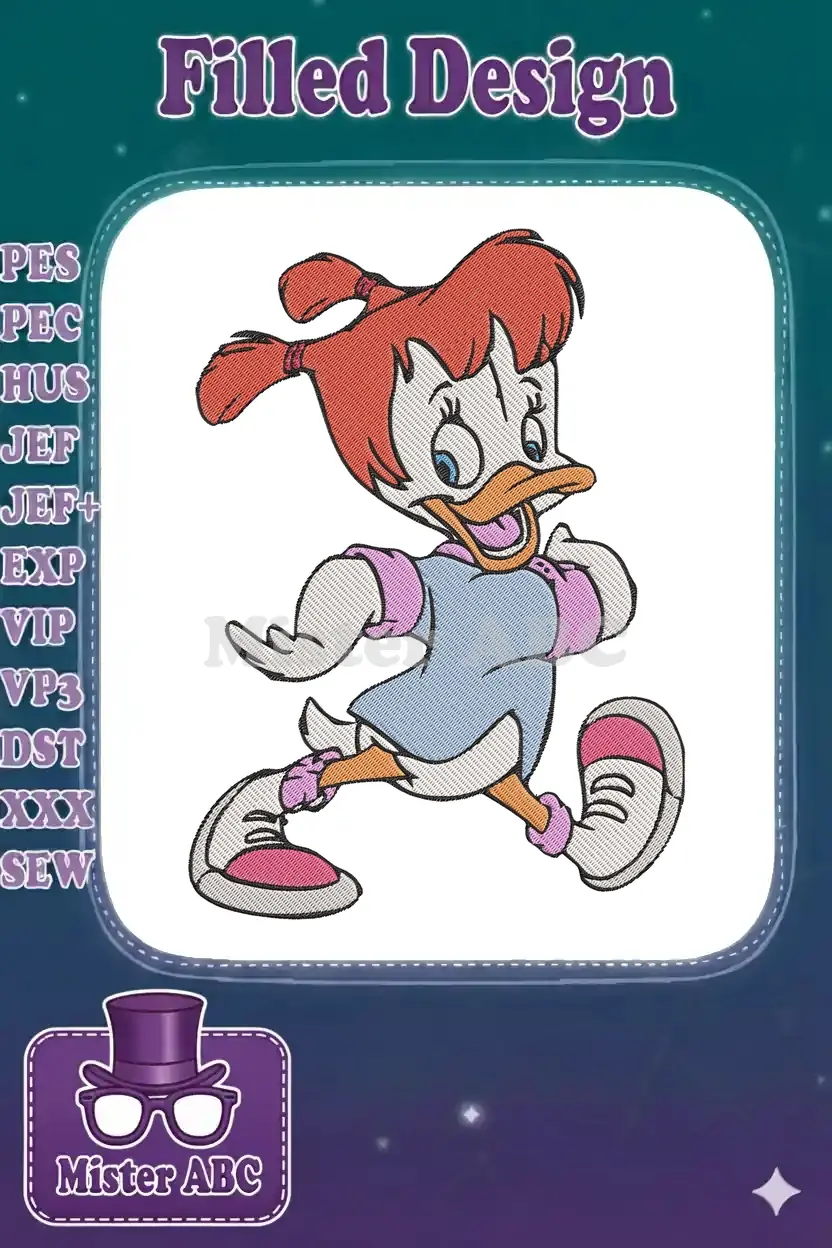 Energetic Daisy Duck cartoon character running in sneakers embroidery designs